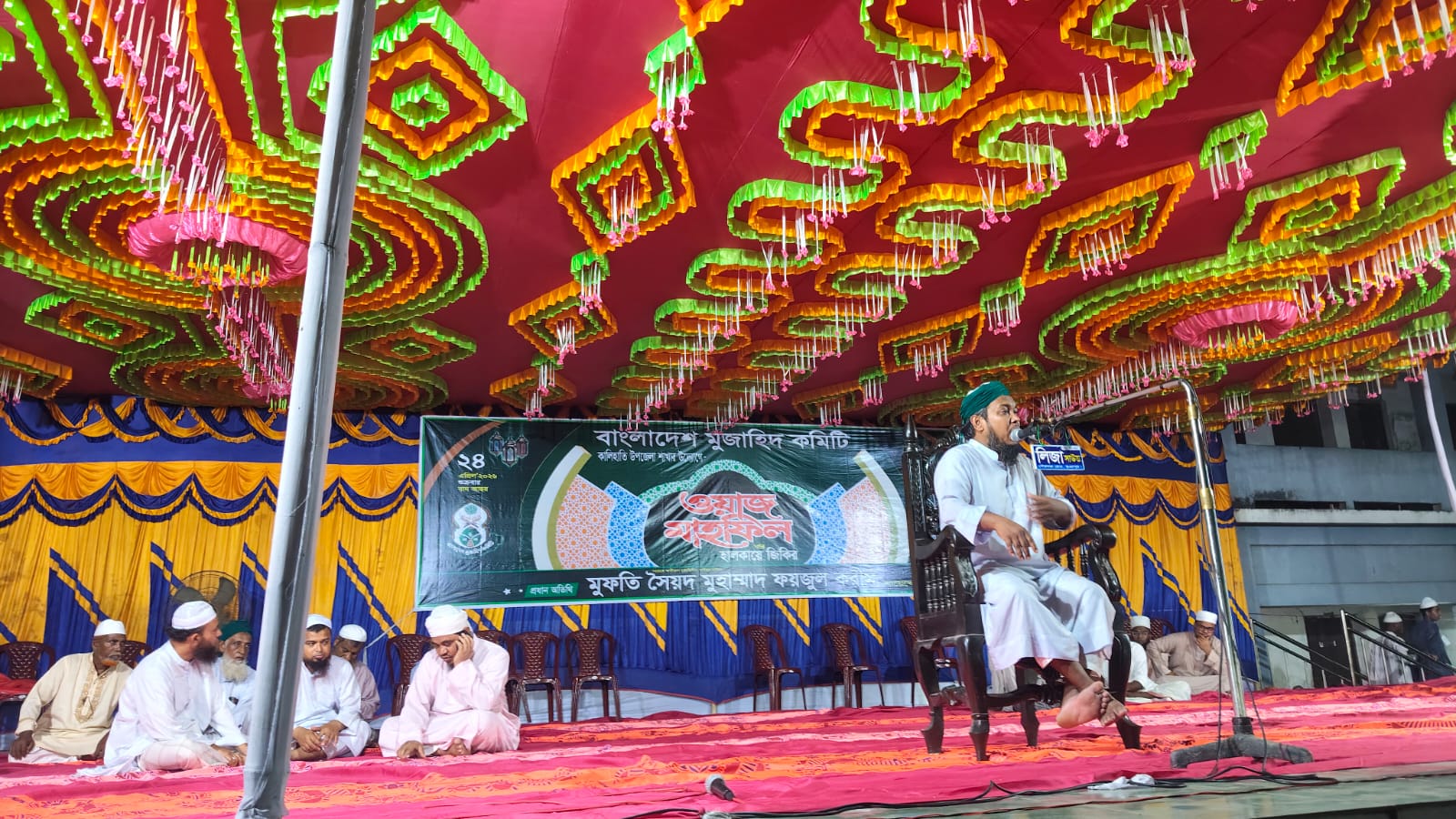 মাহফিলে প্রধান অতিথি হিসেবে উপস্থিত ছিলেন নায়েবে আমিরুল মুজাহিদীন ও শায়খুল হাদিস মুফতি সৈয়দ মোহাম্মদ ফয়জুল করীম (শায়েখে চরমোনাই)। তিনি তার বক্তব্যে ইসলামের সঠিক দিকনির্দেশনা, নৈতিকতা ও মানবিক মূল্যবোধের ওপর গুরুত্বারোপ করে মুসল্লিদের দ্বীনি জীবন অনুসরণের আহ্বান জানান।