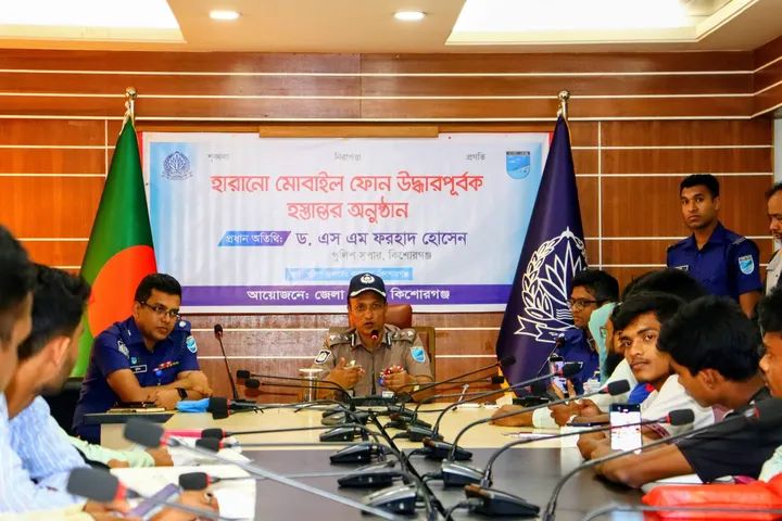 কিশোরগঞ্জে হারিয়ে যাওয়া ও চুরি হওয়া মোবাইল ফোন উদ্ধার করে প্রকৃত মালিকদের মাঝে হস্তান্তর করেছে জেলা পুলিশ। সোমবার (২০ এপ্রিল ২০২৬) সকাল ১১টায় কিশোরগঞ্জ জেলা পুলিশের সম্মেলন কক্ষে আয়োজিত এক অনুষ্ঠানের মাধ্যমে উদ্ধারকৃত এসব মোবাইল আনুষ্ঠানিকভাবে মালিকদের হাতে তুলে দেওয়া হয়।