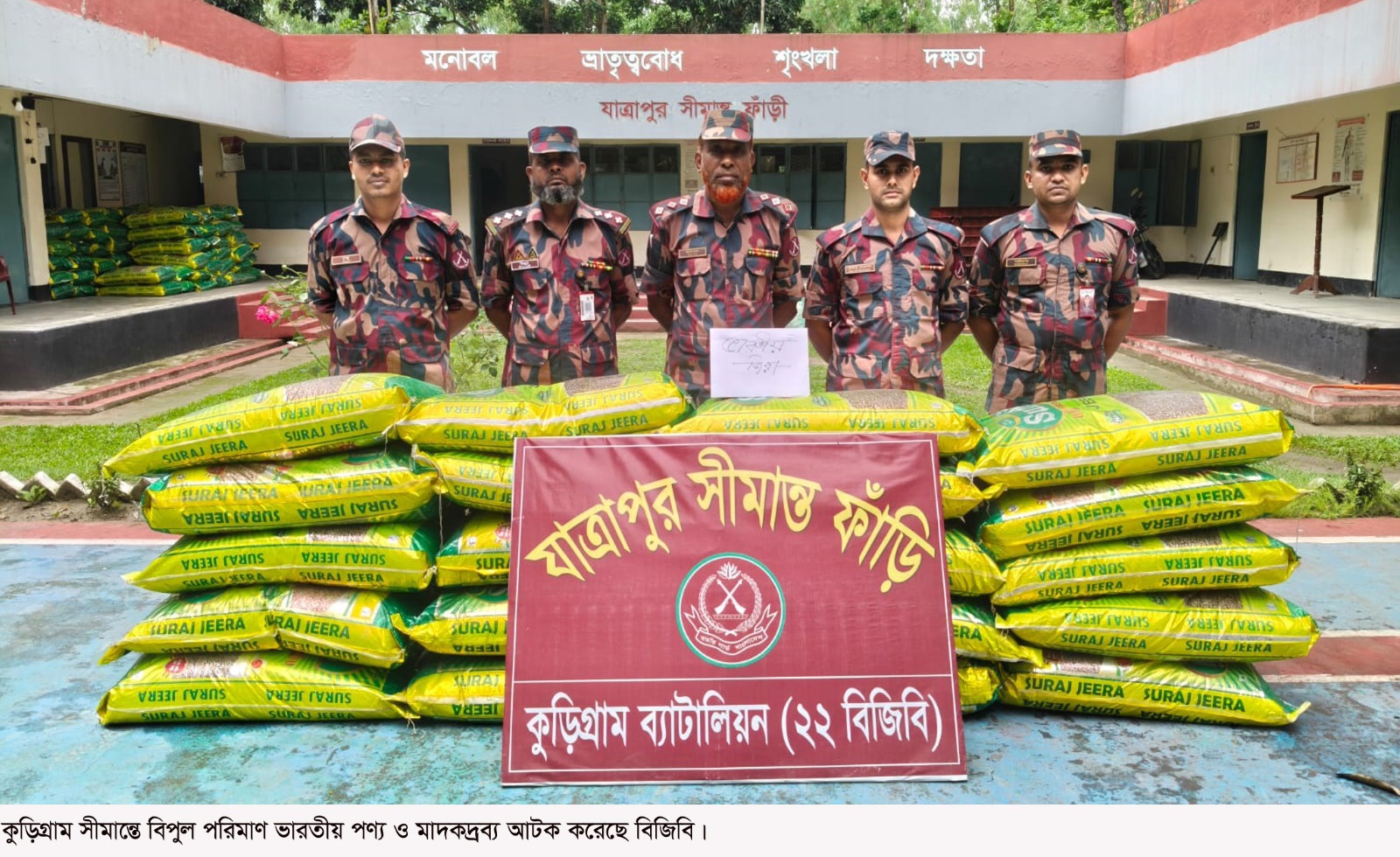 বিজিবি সূত্র জানায়, গত ২৪ ঘণ্টায় ব্যাটালিয়নের দায়িত্বপূর্ণ সীমান্ত এলাকায় পৃথক পৃথক অভিযান পরিচালনা করা হয়। এসব অভিযানে বিপুল পরিমাণ মাদকদ্রব্য, গবাদিপশু এবং বিভিন্ন ভারতীয় পণ্য জব্দ করা হয়।