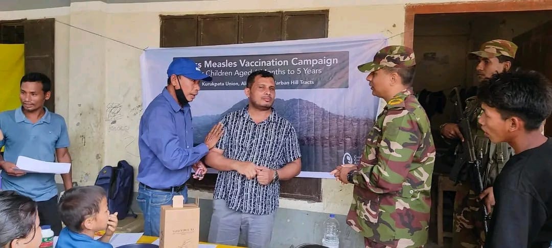 বান্দরবান পার্বত্য জেলার দুর্গম পাহাড়ি জনপদ আলীকদম উপজেলার কুরুকপাতায় হাম-রুবেলা টিকাদান কর্মসূচি ও অস্থায়ী মেডিকেল ক্যাম্প সফলভাবে অনুষ্ঠিত হয়েছে। প্রত্যন্ত এলাকার শিশুদের স্বাস্থ্য সুরক্ষা নিশ্চিত করা এবং সাধারণ মানুষের দোরগোড়ায় চিকিৎসা সেবা পৌঁছে দেওয়ার লক্ষ্যেই এ উদ্যোগ গ্রহণ করা হয়।