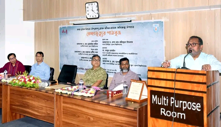 খুলনা বিশ্ববিদ্যালয়ে (খুবি) শিক্ষার্থীদের মানসিক স্বাস্থ্য সচেতনতা বাড়াতে ‘স্বেচ্ছামৃত্যুর পাঠবৃত্ত’ শীর্ষক একটি সেমিনার অনুষ্ঠিত হয়েছে। বৃহস্পতিবার (২২ এপ্রিল) বেলা ১১টা ৩০ মিনিটে বিশ্ববিদ্যালয়ের ৩ নম্বর একাডেমিক ভবনের মাল্টিপারপাস রুমে এ সেমিনার অনুষ্ঠিত হয়।