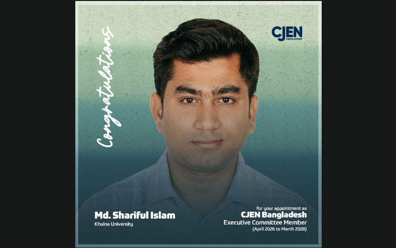 দেশের যোগাযোগ ও সাংবাদিকতা শিক্ষকদের জাতীয় সংগঠন কমিউনিকেশন অ্যান্ড জার্নালিজম এডুকেটরস নেটওয়ার্ক (সিজেইএন) বাংলাদেশ-এর নবগঠিত কার্যনির্বাহী কমিটিতে স্থান পেয়েছেন খুলনা বিশ্ববিদ্যালয়ের (খুবি) শিক্ষক শরিফুল ইসলাম।