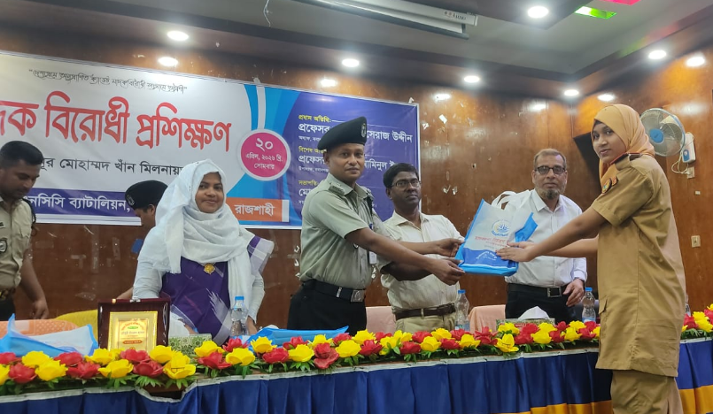চাঁপাইনবাবগঞ্জে যুবসমাজকে মাদকের ভয়াল থাবা থেকে রক্ষা এবং সামাজিক সচেতনতা বৃদ্ধির লক্ষ্যে মাদকবিরোধী প্রশিক্ষণ ও আলোচনা সভা অনুষ্ঠিত হয়েছে।