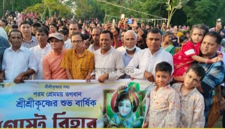 সুনামগঞ্জের জগন্নাথপুর উপজেলায় সনাতন ধর্মাবলম্বীদের অন্যতম ধর্মীয় উৎসব শ্রীকৃষ্ণের গোষ্ঠ বিহার উপলক্ষে বর্ণাঢ্য বার্ষিক মহোৎসব অনুষ্ঠিত হয়েছে। শুক্রবার (তারিখ উল্লেখযোগ্য) দিনব্যাপী আয়োজিত এই উৎসব ঘিরে উপজেলার যাত্রাপাশা গ্রামসহ আশপাশের এলাকায় ছিল উৎসবমুখর পরিবেশ। ভোর থেকে রাত পর্যন্ত নানা ধর্মীয় আচার-অনুষ্ঠান, শোভাযাত্রা, কীর্তন ও সাংস্কৃতিক পরিবেশনার মধ্য দিয়ে উৎসবটি পালিত হয়।
