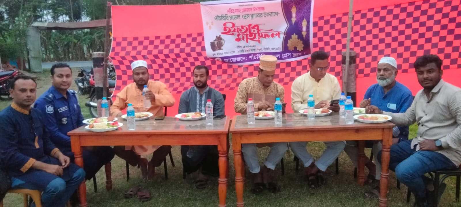 অনুষ্ঠানের শুরুতে পবিত্র রমজানের তাৎপর্য ও সামাজিক সম্প্রীতি নিয়ে একটি সংক্ষিপ্ত আলোচনা সভা অনুষ্ঠিত হয়। এতে সভাপতিত্ব করেন মডেল প্রেসক্লাবের সহ-সভাপতি আমজাদ হোসেন মাস্টার। প্রধান অতিথি হিসেবে উপস্থিত থেকে বক্তব্য রাখেন পাঁচবিবি থানার অফিসার ইনচার্জ (ওসি) আব্দুল হাফিজ মোঃ রায়হান।
