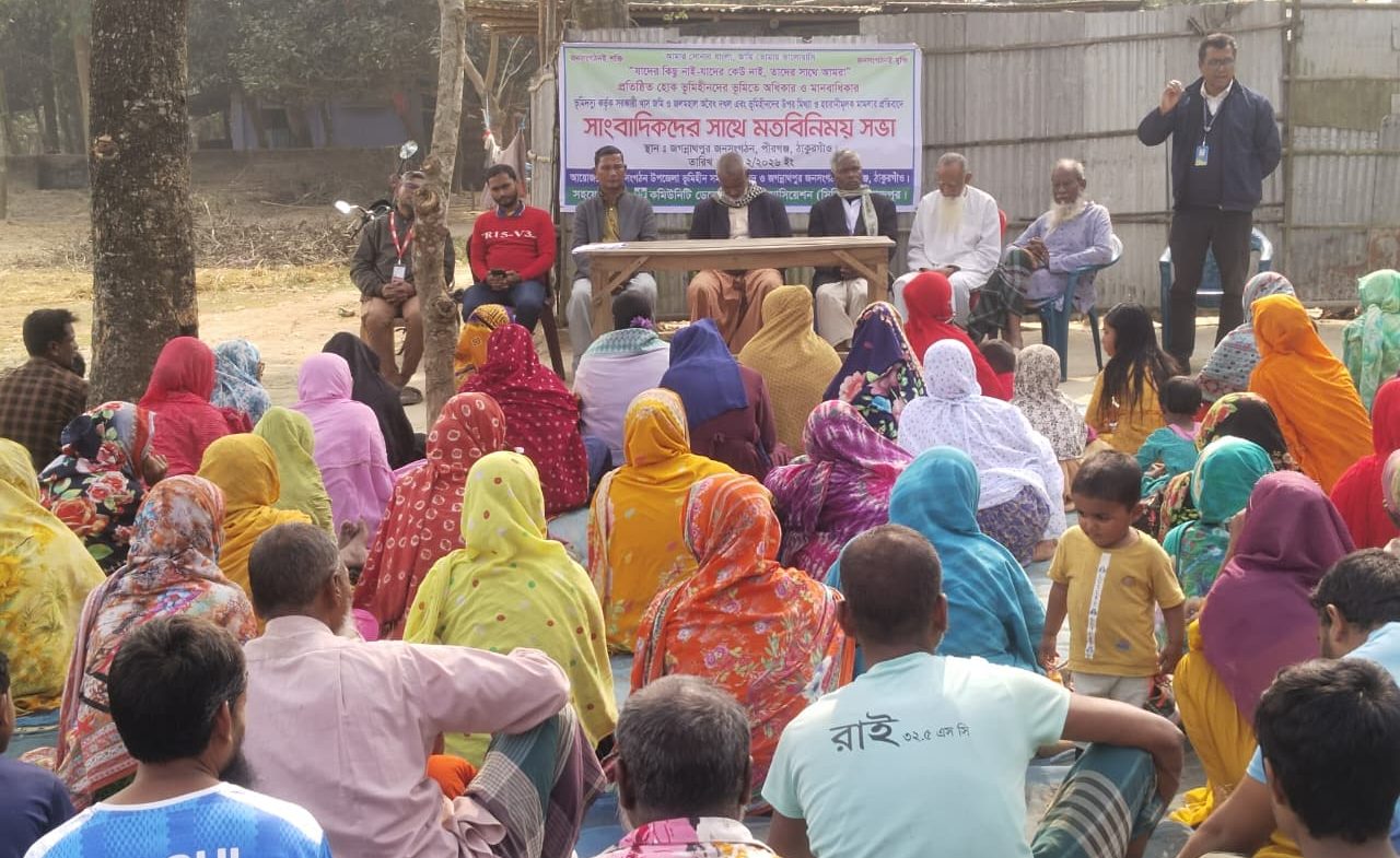 ঠাকুরগাঁওয়ের পীরগঞ্জ উপজেলার বৈরচুনা ইউনিয়নের শেয়ালডাঙ্গী গ্রামে উচ্ছেদ আতঙ্কে মানবেতর জীবন যাপন করছে ১৭২টি ভূমিহীন পরিবার। প্রায় চার দশক ধরে সরকারি খাসজমিতে বসবাস করলেও আজ পর্যন্ত তারা জমির কোনো স্থায়ী বন্দোবস্ত পায়নি। দীর্ঘদিন ধরে বন্দোবস্তের জন্য প্রশাসনের দ্বারে দ্বারে ঘুরেও কোনো কার্যকর সমাধান না পাওয়ায় চরম অনিশ্চয়তা ও আতঙ্কে দিন কাটাচ্ছেন এসব অসহায় পরিবার।