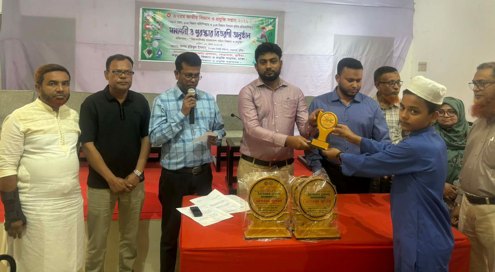 মেলা শেষে বিকেলে এক পুরস্কার বিতরণী অনুষ্ঠানের আয়োজন করা হয়। এতে বিভিন্ন ক্যাটাগরিতে শ্রেষ্ঠ প্রকল্প ও উদ্ভাবনী উপস্থাপনার জন্য শিক্ষার্থীদের হাতে পুরস্কার তুলে দেন উপজেলা নির্বাহী অফিসার রফিকুল ইসলাম। তিনি শিক্ষার্থীদের সৃজনশীলতা ও উদ্ভাবনী চিন্তাকে ভবিষ্যৎ বাংলাদেশের উন্নয়নের চালিকাশক্তি হিসেবে উল্লেখ করেন।
