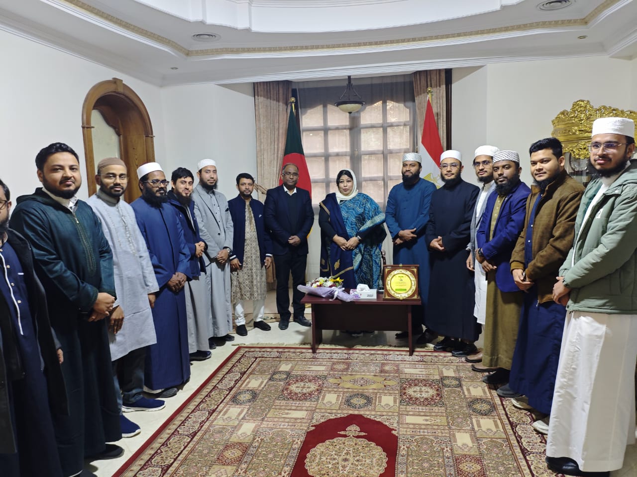 বৈঠক শেষে ইত্তিহাদের প্রধান উপদেষ্টা শিহাব উদ্দিন আজহারী রাষ্ট্রদূতকে ফুলেল শুভেচ্ছা জানান এবং কার্যকরী পরিষদের সভাপতি নোমানুল করীম আজহারী সম্মাননা ক্রেস্ট প্রদান করেন।