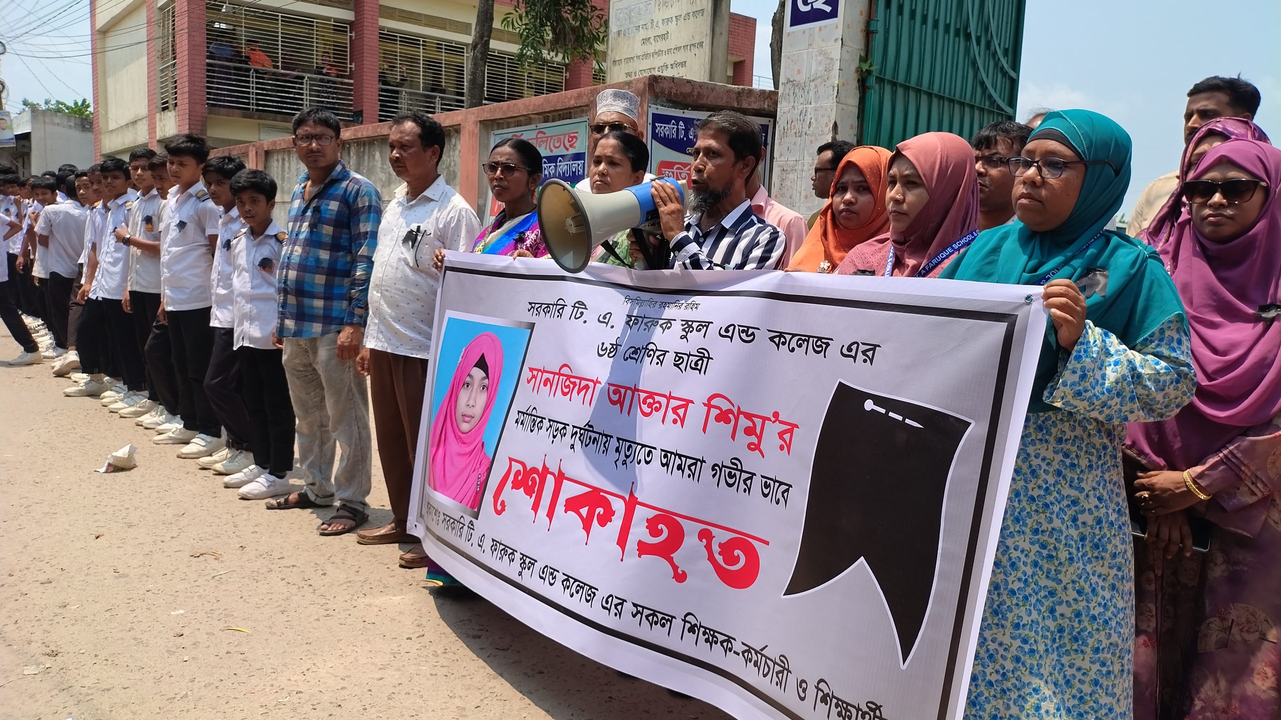 সরকারি টি এ ফারুক স্কুল এন্ড কলেজের প্রধান শিক্ষক (ভারপ্রাপ্ত) তালুকদার মোঃ জিয়াদ হোসাইন বলেন, সম্প্রতি বেপরোয়া গাড়ি চালানোর জন্য সরকারি টি এ ফারুক স্কুল এন্ড কলেজের মেধাবী ছাত্রী সানজিদা আক্তার শিমু (১১) ইজিবাইকের চাপায় মারা যায়।