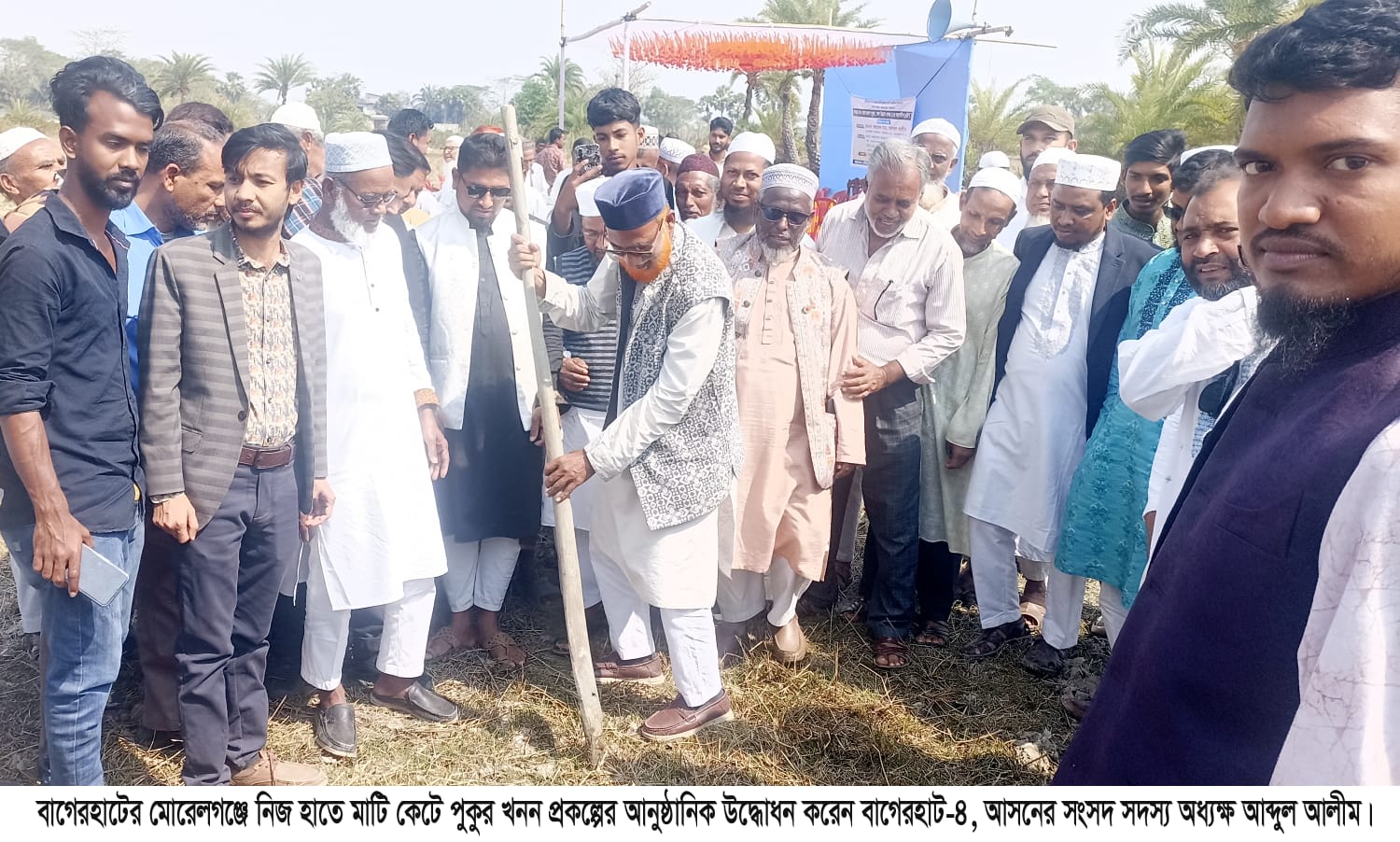 বাগেরহাটের মোরেলগঞ্জ উপজেলায় সুপেয় পানির সংকট নিরসনে পুকুর খনন প্রকল্পের আনুষ্ঠানিক উদ্বোধন করেছেন বাগেরহাট-৪ (মোরেলগঞ্জ-শরণখোলা) আসনের সংসদ সদস্য অধ্যক্ষ আব্দুল আলীম।