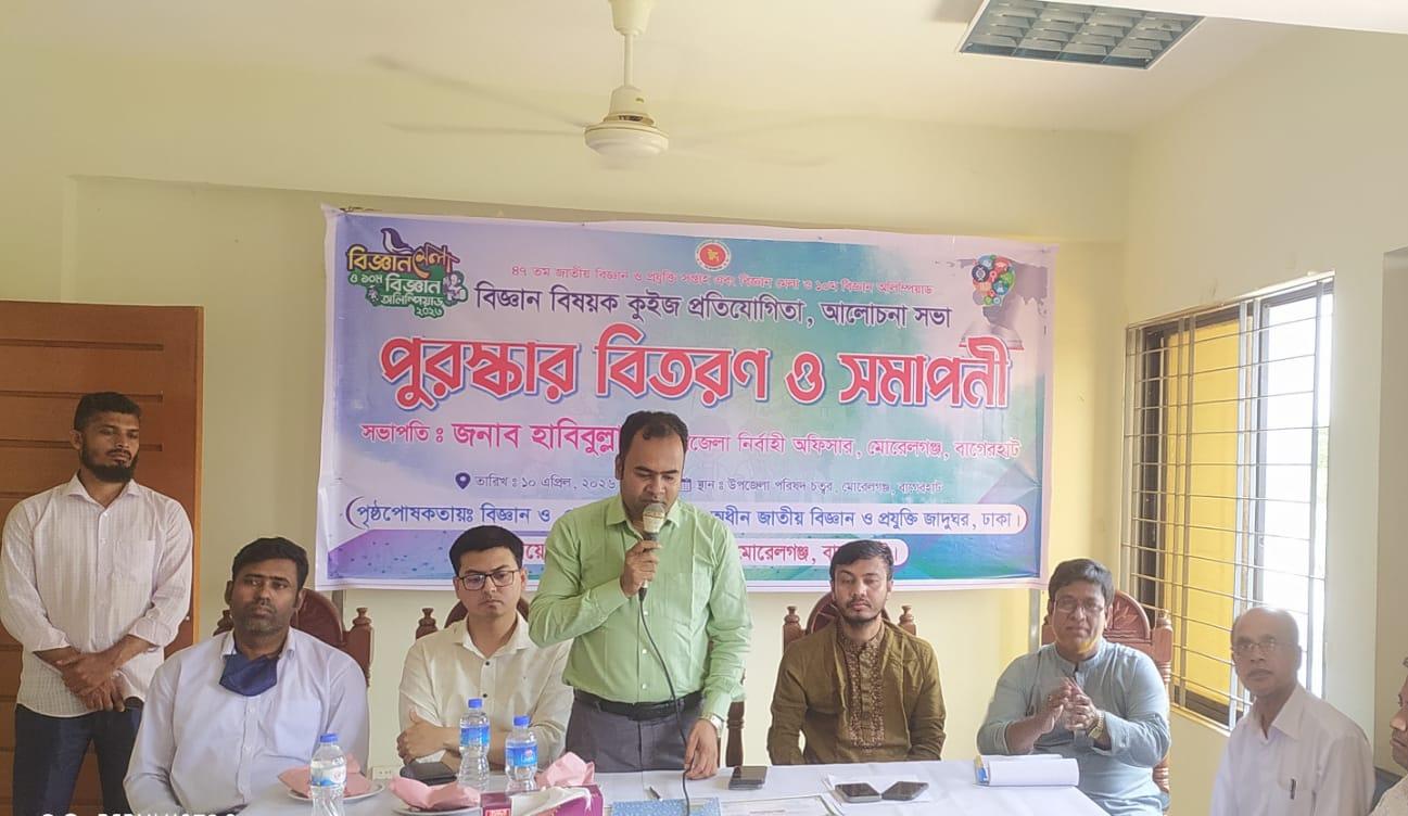 বাগেরহাটের মোরেলগঞ্জে দুই দিনব্যাপী আয়োজিত ৪৭তম জাতীয় বিজ্ঞান ও প্রযুক্তি সপ্তাহ, বিজ্ঞান মেলা, ১০ম বিজ্ঞান অলিম্পিয়াড, বিজ্ঞানভিত্তিক কুইজ ও বক্তৃতা প্রতিযোগিতার বর্ণাঢ্য সমাপনী অনুষ্ঠান অনুষ্ঠিত হয়েছে। শুক্রবার (১০ এপ্রিল) উপজেলা প্রশাসনের আয়োজনে এ সমাপনী অনুষ্ঠান অনুষ্ঠিত হয়।