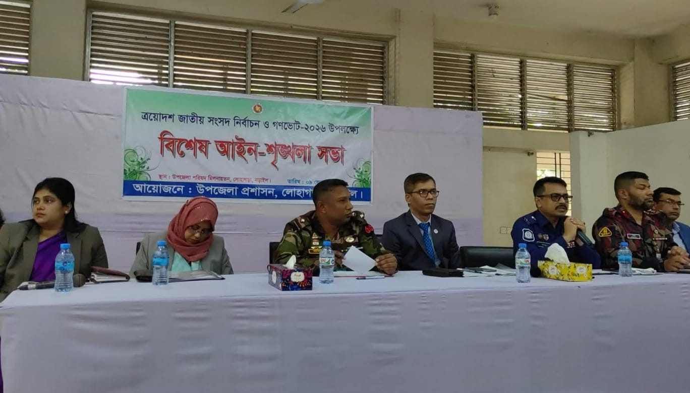 আসন্ন ত্রয়োদশ জাতীয় সংসদ নির্বাচন ও গণভোট-২০২৬ উপলক্ষে সার্বিক নিরাপত্তা নিশ্চিত করতে নড়াইলের লোহাগড়া উপজেলায় বিশেষ আইন-শৃঙ্খলা সভা অনুষ্ঠিত হয়েছে।