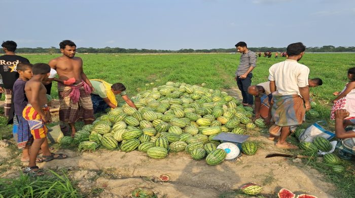 শরণখোলায় তরমুজে বাম্পার ফলন, খাল পুনঃখননের দাবিতে কৃষকরা