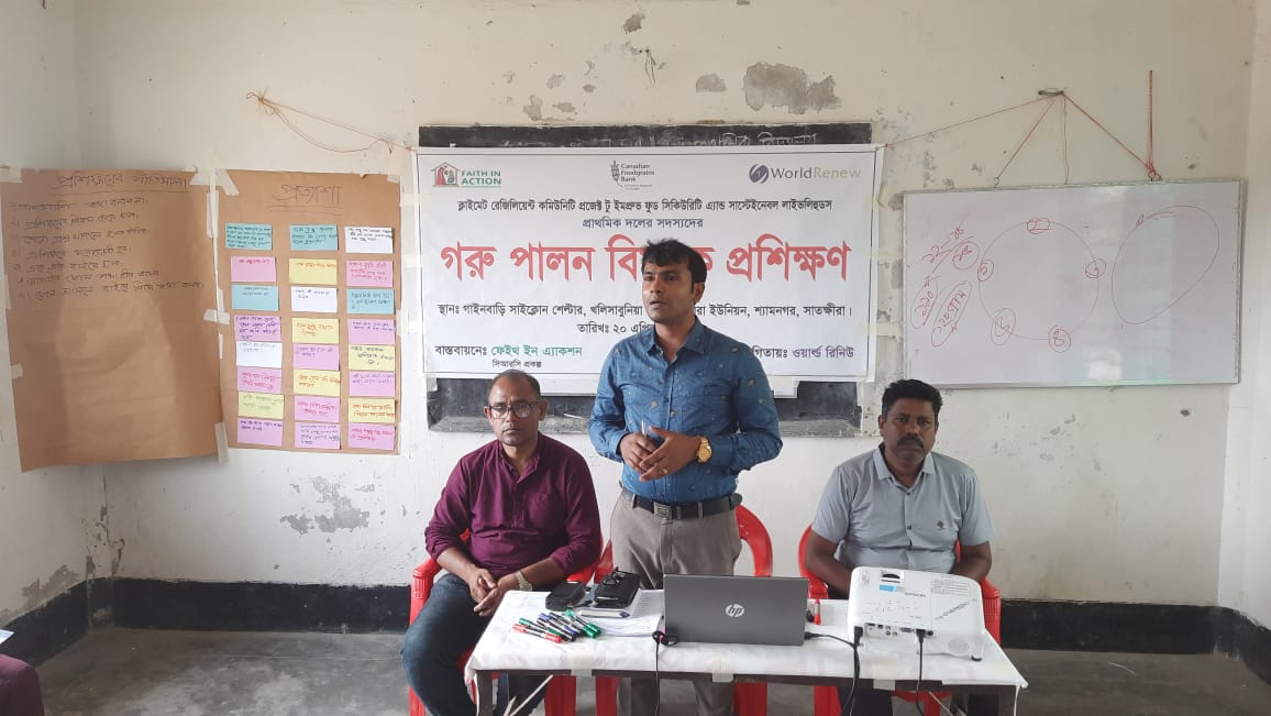 সাতক্ষীরার শ্যামনগরের গাবুরা ইউনিয়নে পারিবারিক আয় বৃদ্ধি ও জীবিকায়ন উন্নয়নের লক্ষ্যে ২৫ জন নারী-পুরুষকে গরু পালন বিষয়ক প্রশিক্ষণ দেওয়া হয়েছে।