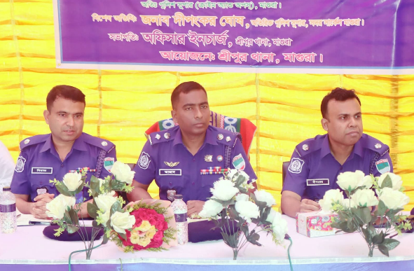 মাগুরার শ্রীপুর থানার উদ্যোগে মাদক, ইভটিজিং, দাঙ্গা ও সামাজিক সহিংসতা প্রতিরোধ এবং আইন-শৃঙ্খলা পরিস্থিতি স্বাভাবিক রাখতে এক সচেতনতামূলক মতবিনিময় সভা অনুষ্ঠিত হয়েছে।