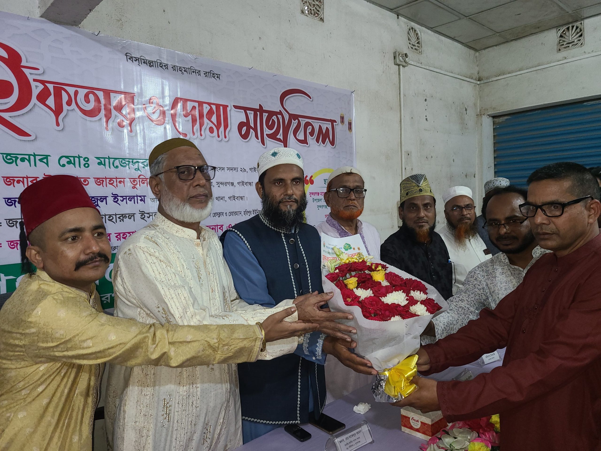 অনুষ্ঠানে সরকারি কর্মকর্তা-কর্মচারী, বিভিন্ন ইউনিয়ন পরিষদের চেয়ারম্যান, রাজনৈতিক নেতাকর্মী, ব্যবসায়ী, গণমাধ্যমকর্মীসহ এলাকার গণ্যমান্য ব্যক্তিবর্গ উপস্থিত ছিলেন। ইফতার মাহফিলটি সৌহার্দ্যপূর্ণ পরিবেশে সম্পন্ন হয় এবং উপস্থিত অতিথিরা এ ধরনের আয়োজন সমাজে সম্প্রীতি ও ভ্রাতৃত্ববোধ বৃদ্ধিতে গুরুত্বপূর্ণ ভূমিকা রাখবে বলে আশাবাদ ব্যক্ত করেন।