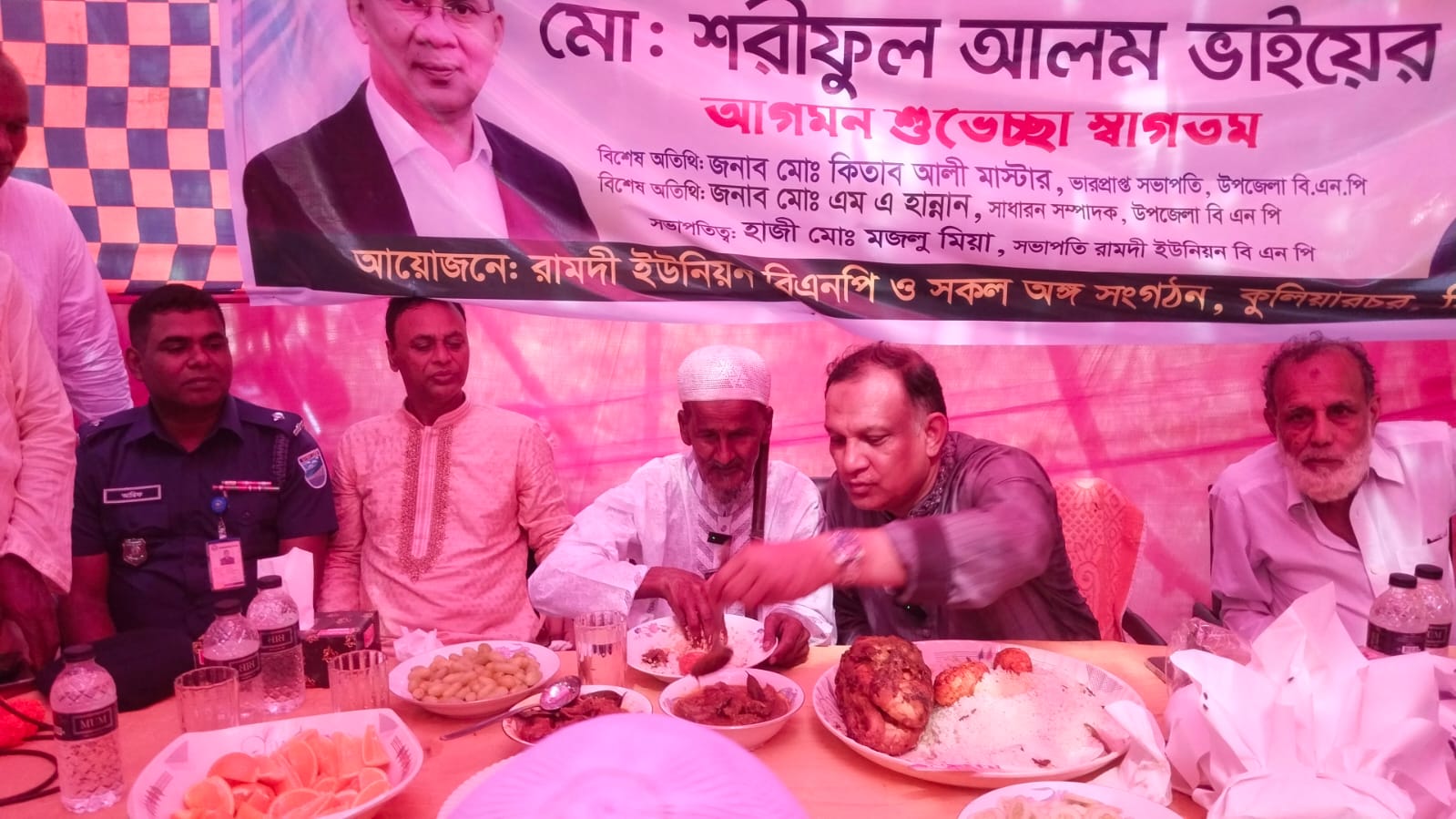 ত্রয়োদশ জাতীয় সংসদ নির্বাচনের আগে স্থানীয় এক কর্মীসভায় নেতাকর্মীরা তাকে ভাত খাওয়ানোর চেষ্টা করলে তিনি তা প্রত্যাখ্যান করেন। তখনই প্রতিমন্ত্রী শরীফুল আলম তাকে প্রতিশ্রুতি দেন—বিএনপি ক্ষমতায় এলে তিনি নিজ হাতে তাকে ভাত খাওয়াবেন। সেই প্রতিশ্রুতি বাস্তবায়ন করতেই বৈশাখের দিনে ইনু মিয়ার বাড়িতে যান তিনি।