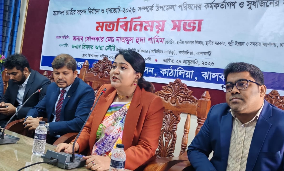 ঝালকাঠির কাঠালিয়া উপজেলায় জাতীয় সংসদ নির্বাচন ও গণভোট বিষয়ে এক মতবিনিময় সভা অনুষ্ঠিত হয়েছে।