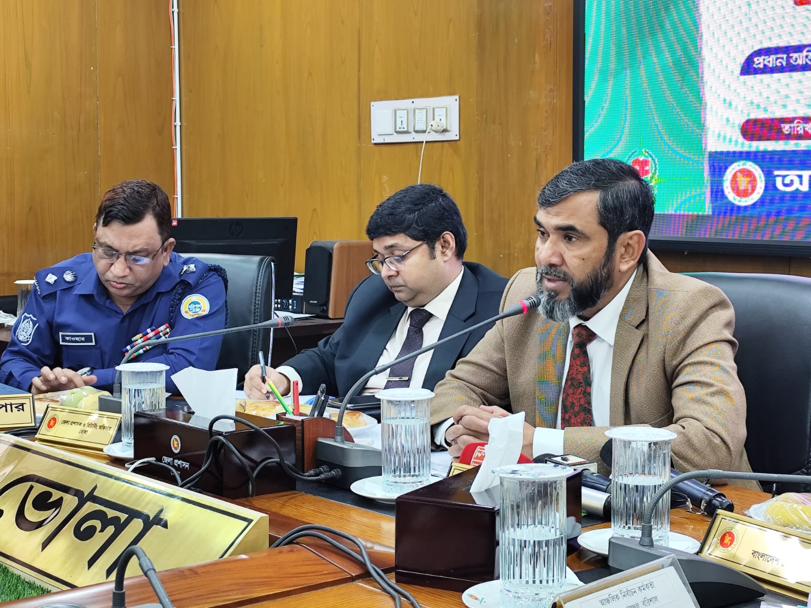 মতবিনিময় সভায় সভাপতিত্ব করেন ভোলা জেলা রিটার্নিং কর্মকর্তা ও জেলা প্রশাসক ডা. শামীম রহমান। বিশেষ অতিথি হিসেবে উপস্থিত ছিলেন ভোলা জেলার পুলিশ সুপার শহিদুল্লাহ কাওছার, সিভিল সার্জন ডা. মো. মনিরুল ইসলাম। এছাড়াও সভায় সহকারী রিটার্নিং কর্মকর্তাবৃন্দ, নৌবাহিনী, কোস্টগার্ড, আনসারসহ বিভিন্ন আইনশৃঙ্খলা বাহিনীর সদস্য এবং সরকারি দপ্তরের ঊর্ধ্বতন কর্মকর্তারা উপস্থিত ছিলেন।