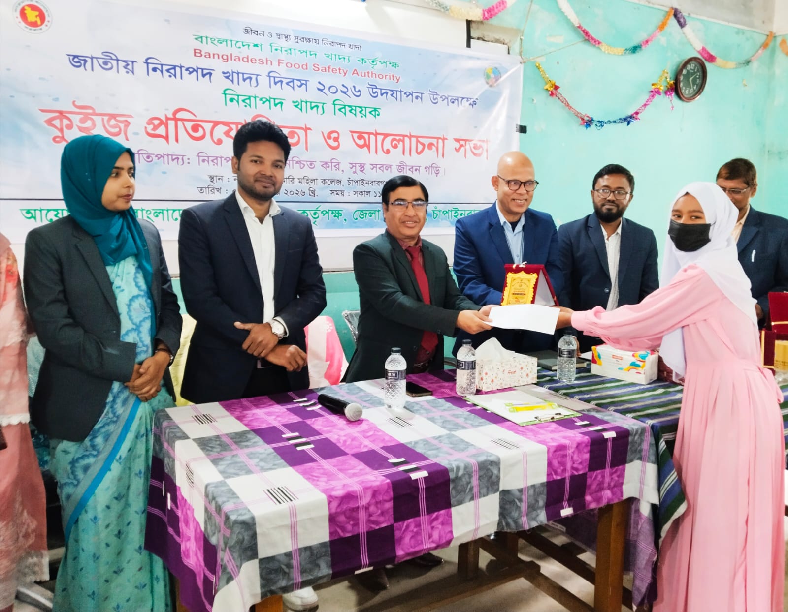 চাঁপাইনবাবগঞ্জে জাতীয় নিরাপদ খাদ্য দিবস–২০২৬ উপলক্ষে নানা কর্মসূচির মধ্য দিয়ে দিবসটি উদযাপন করেছে বাংলাদেশ নিরাপদ খাদ্য কর্তৃপক্ষ। এ উপলক্ষে শিক্ষার্থীদের মধ্যে সচেতনতা বাড়াতে নিরাপদ খাদ্য বিষয়ক কুইজ প্রতিযোগিতা ও আলোচনা সভার আয়োজন করা হয়। “নিরাপদ খাদ্য নিশ্চিত করি, সুস্থ সবল জীবন গড়ি”—এই প্রতিপাদ্যকে সামনে রেখে সোমবার (২ ফেব্রুয়ারি) সকাল ১১টায় চাঁপাইনবাবগঞ্জ সরকারি মহিলা কলেজের হলরুমে অনুষ্ঠানটি অনুষ্ঠিত হয়।