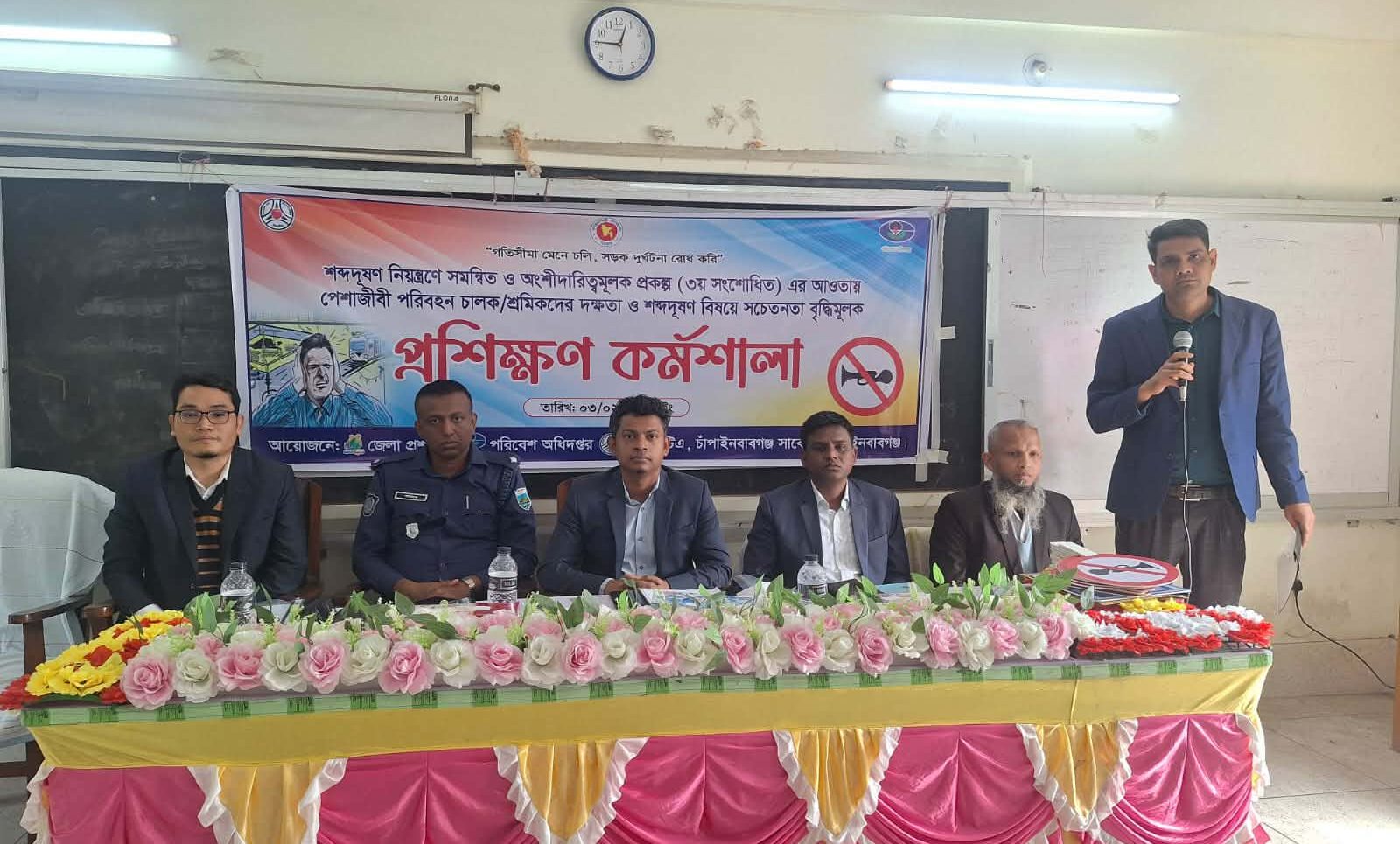 চাঁপাইনবাবগঞ্জে পেশাজীবী পরিবহন চালকদের দক্ষতা বৃদ্ধি এবং শব্দদূষণ সম্পর্কে সচেতনতা তৈরির লক্ষ্যে এক প্রশিক্ষণ কর্মশালা অনুষ্ঠিত হয়েছে।