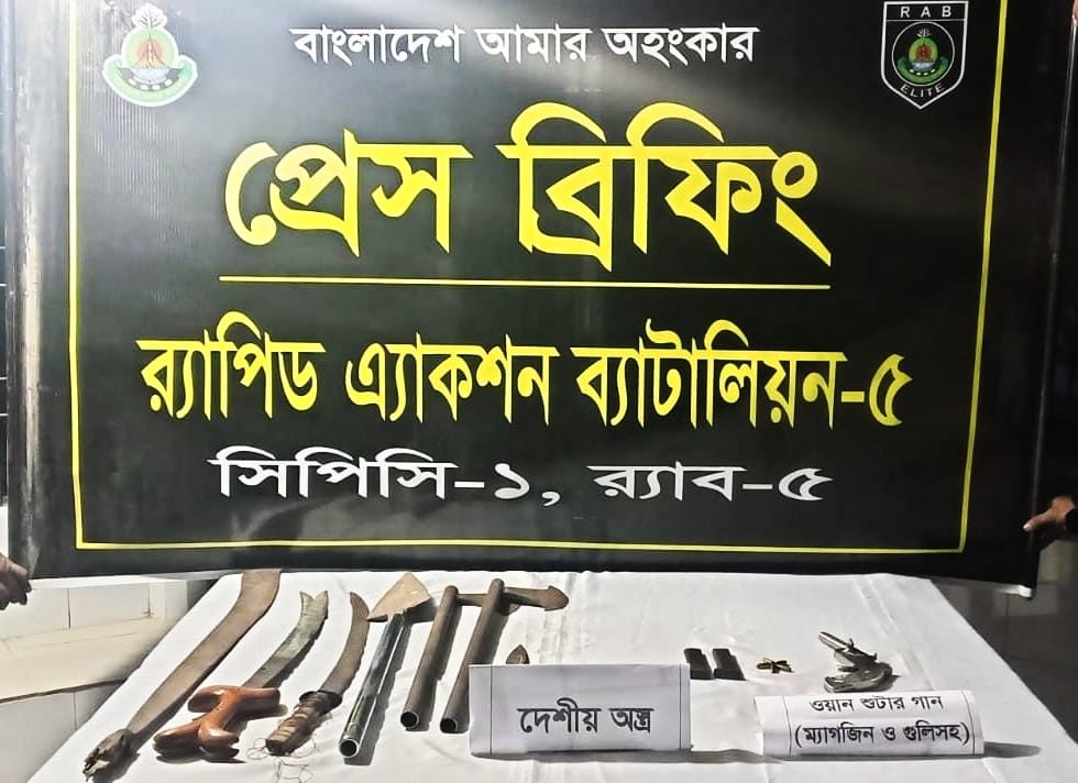 উদ্ধারকৃত অস্ত্রের মধ্যে রয়েছে ২টি তলোয়ার, ১টি রাম দা, ১টি স্টিলের বল্লম, ২টি চাইনিজ কুড়াল, ১টি ডেগার, ১টি ওয়ান শ্যুটার পিস্তল, ২টি ম্যাগাজিন এবং ৫ রাউন্ড কার্তুজ। র্যাবের প্রাথমিক ধারণা অনুযায়ী, এই অস্ত্রগুলো ব্যবহার করে নাশকরা নির্বাচনী সহিংসতা বা অশান্তি সৃষ্টির পরিকল্পনা করছিল। তবে সঠিক সময়ে অভিযান পরিচালনার ফলে কোনো অপ্রীতিকর ঘটনা ঘটানো হয়নি এবং পরিকল্পিত নাশকতা রুখে দেওয়া সম্ভব হয়েছে।
