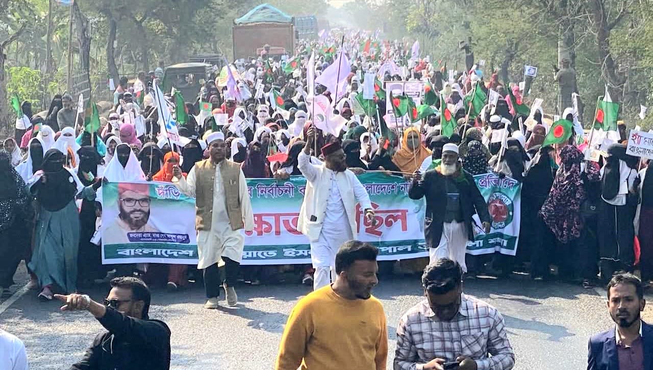 নির্বাচনী কাজে নারী হেনস্তার প্রতিবাদে রামপালে জামায়াতের বিক্ষোভ মিছিল
