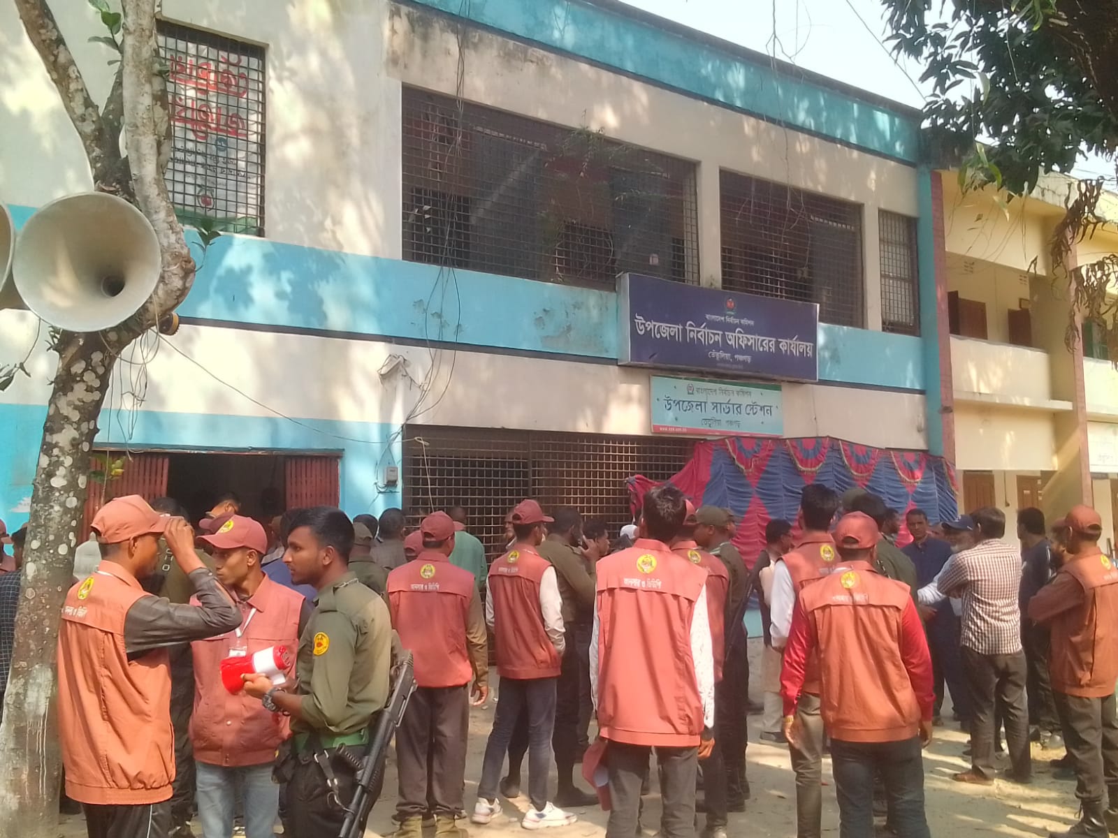 নির্বাচনী সরঞ্জাম বিতরণ ও পরিবহনের সময় আইনশৃঙ্খলা পরিস্থিতি স্বাভাবিক রাখতে পুলিশ, আনসারসহ বিভিন্ন আইনশৃঙ্খলা বাহিনীর সদস্যরা কঠোর নিরাপত্তা ব্যবস্থা গ্রহণ করেছে। উপজেলা পরিষদ চত্বরজুড়ে নিরাপত্তা জোরদার করা হয়েছে এবং কড়া নিরাপত্তা বেষ্টনীর মধ্য দিয়ে নির্বাচনী উপকরণ নির্ধারিত ভোটকেন্দ্রগুলোতে পাঠানো হচ্ছে। সরঞ্জাম পরিবহনের সময় যাতে কোনো ধরনের অনাকাঙ্ক্ষিত ঘটনা না ঘটে, সে বিষয়ে প্রশাসন সর্বোচ্চ সতর্ক অবস্থানে রয়েছে।