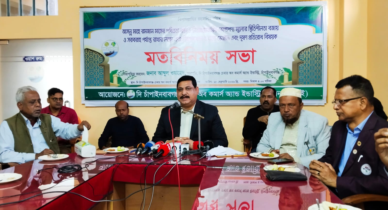 চাঁপাইনবাবগঞ্জ: আসন্ন মাহে রমজান উপলক্ষে চাঁপাইনবাবগঞ্জে নিত্যপ্রয়োজনীয় পণ্যের মূল্য স্থিতিশীল রাখা, পর্যাপ্ত সরবরাহ নিশ্চিত করা এবং খাদ্য ভেজাল ও দূষণ প্রতিরোধের উদ্দেশ্যে একটি মতবিনিময় সভা অনুষ্ঠিত হয়েছে। রবিবার (১৫ ফেব্রুয়ারি) বিকাল ৪টায় দি চাঁপাইনবাবগঞ্জ চেম্বার অব কমার্স এন্ড ইন্ডাস্ট্রির সম্মেলন কক্ষে সভাটি আয়োজন করা হয়।