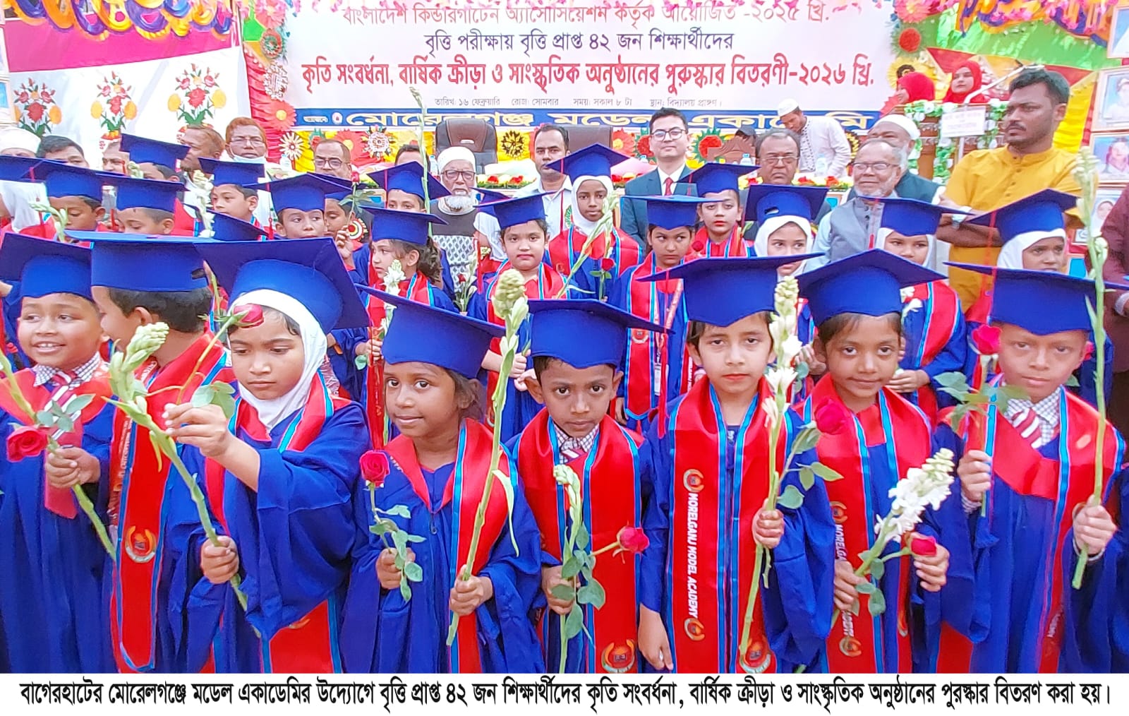মোরেলগঞ্জ মডেল একাডেমির উদ্যোগে বাংলাদেশ কিন্ডারগার্টেন অ্যাসোসিয়েশন কর্তৃক আয়োজিত ২০২৫ সালের বৃত্তি পরীক্ষায় সাফল্য অর্জন করা ৪২ জন কৃতি শিক্ষার্থীকে সংবর্ধনা প্রদান ও পুরস্কার বিতরণ করা হয়েছে। একই অনুষ্ঠানে একাডেমির বার্ষিক ক্রীড়া ও সাংস্কৃতিক প্রতিযোগিতার বিজয়ীদেরও সম্মাননা দেওয়া হয়।