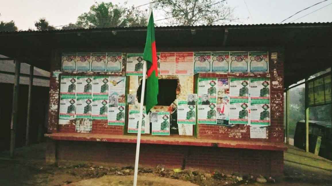 খবর পেয়ে স্থানীয়রা কার্যালয়ে গিয়ে দেয়ালে টাঙানো ছবি ও উত্তোলিত জাতীয় পতাকা নামিয়ে ফেলেন। পরে পরিস্থিতি শান্ত থাকে এবং এলাকায় অতিরিক্ত কোনো অপ্রীতিকর ঘটনার খবর পাওয়া যায়নি।