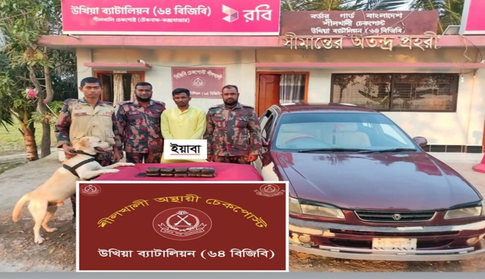 বিজিবি সূত্রে জানা যায়, বৃহস্পতিবার (২০ ফেব্রুয়ারি ২০২৬) বিকেল আনুমানিক ৪টা ২০ মিনিটে টেকনাফ থেকে কক্সবাজারগামী একটি প্রাইভেটকার শীলখালী অস্থায়ী চেকপোস্টে তল্লাশির জন্য থামানো হয়। গোপন সংবাদের ভিত্তিতে পরিচালিত এ অভিযানে বিজিবি সদস্যদের পাশাপাশি বিজিডি-১১২৮ নম্বরের নারকোটিক্স ডগ “হেনরি” (পুরুষ, ল্যাব্রাডার) অংশ নেয়।