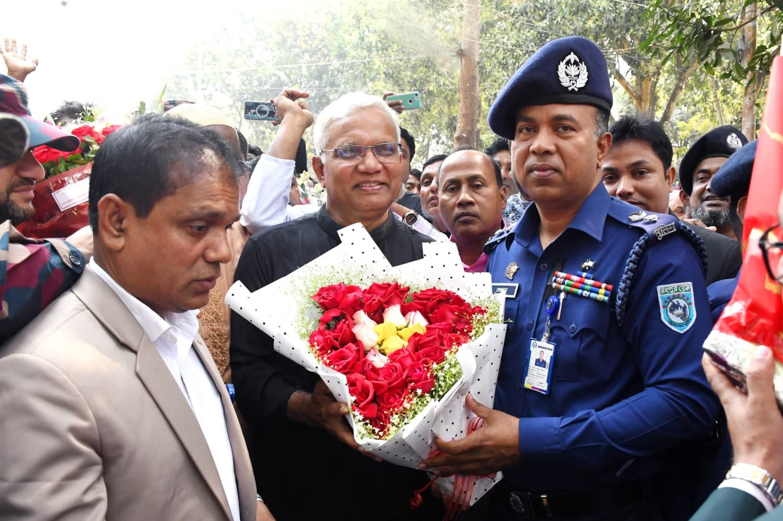 উপজেলা চত্বরে মাননীয় মন্ত্রী মহোদয় উপস্থিত হলে প্রথমে তাকে ফুল দিয়ে শুভেচ্ছা জানান দিনাজপুর জেলার পুলিশ সুপার মোঃ জেদান আল মুসা, পিপিএম। পরে জেলা পুলিশের একটি সুসজ্জিত চৌকস দল মন্ত্রী মহোদয়কে গার্ড অব অনার প্রদান করে, যা অনুষ্ঠানকে বিশেষ মর্যাদা ও গৌরব প্রদান করে।
