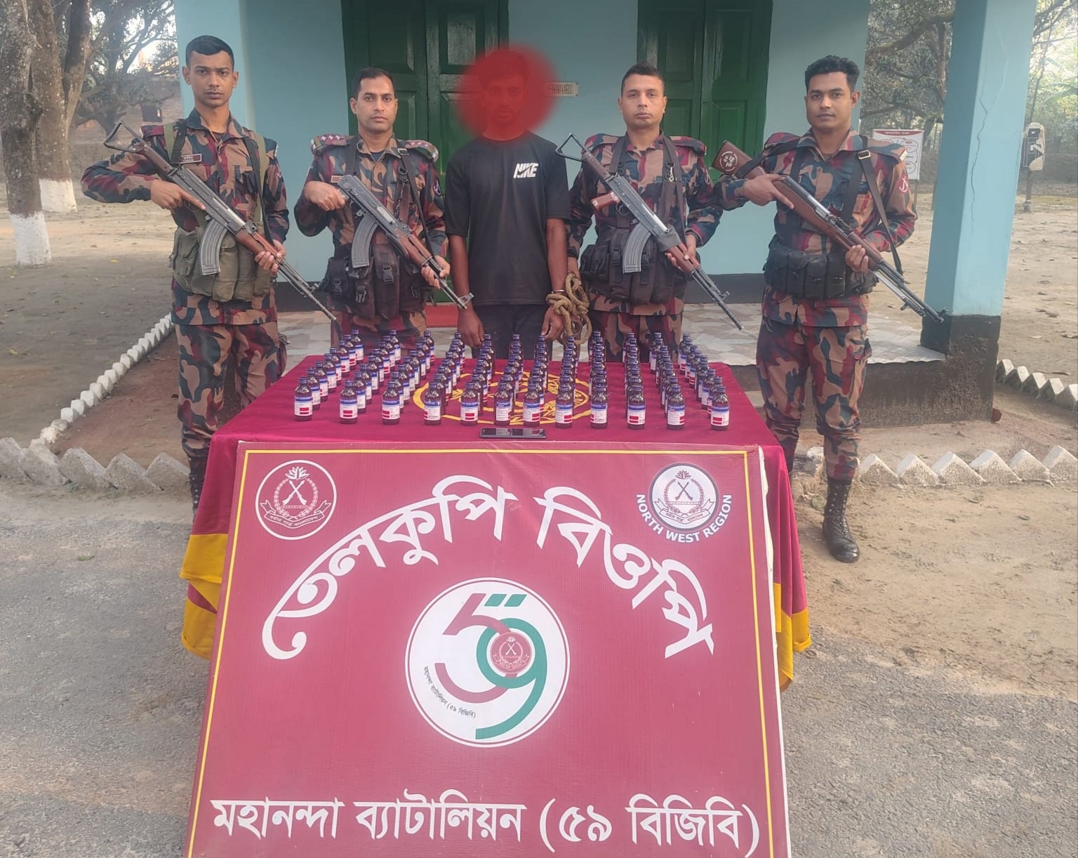 সীমান্ত এলাকায় চোরাচালান ও মাদকবিরোধী চলমান অভিযানের অংশ হিসেবে চাঁপাইনবাবগঞ্জে মহানন্দা ব্যাটালিয়ন (৫৯ বিজিবি) একটি সফল অভিযান পরিচালনা করে বিপুল পরিমাণ নেশাজাতীয় সিরাপসহ এক আসামিকে আটক করেছে। অভিযানে একটি মোবাইল ফোনও জব্দ করা হয়।