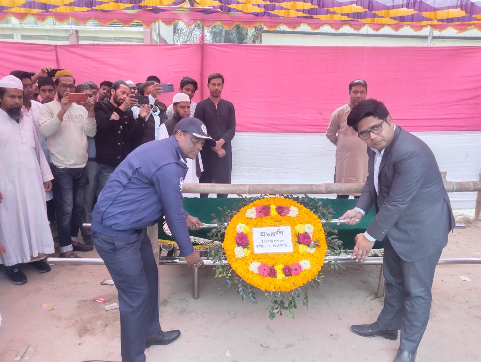 উপজেলা সহকারী কমিশনার (ভূমি) ও নির্বাহী ম্যাজিস্ট্রেট মেফতাহুল হাসান রাষ্ট্রের পক্ষে সালাম গ্রহণ করেন। এ সময় জাতীয় পতাকা দিয়ে আচ্ছাদিত মরদেহে পুষ্পমাল্য অর্পণ করা হয়। কিশোরগঞ্জ জেলা পুলিশের একটি চৌকস দল ও বিউগলে সুরের মধ্য দিয়ে এক মিনিট নীরবতা পালন শেষে জানাজা সম্পন্ন হয়। পরে স্থানীয় পারিবারিক কবরস্থানে মরদেহ দাফন করা হয়।