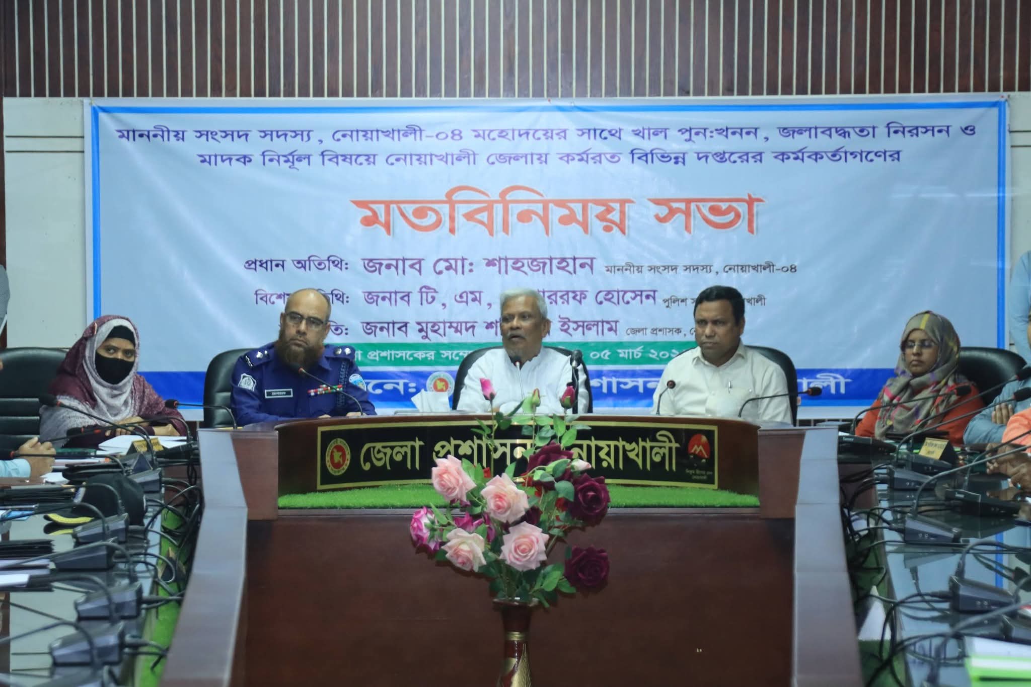 নোয়াখালী জেলার সার্বিক উন্নয়ন, পরিবেশ সংরক্ষণ এবং সামাজিক নিরাপত্তা নিশ্চিত করার লক্ষ্যে খাল পুনঃখনন, জলাবদ্ধতা নিরসন ও মাদক নির্মূল বিষয়ে একটি গুরুত্বপূর্ণ মতবিনিময় সভা অনুষ্ঠিত হয়েছে। বৃহস্পতিবার (৫ মার্চ) নোয়াখালী জেলা প্রশাসকের সম্মেলন কক্ষে এ সভার আয়োজন করা হয়। এতে সভাপতিত্ব করেন নোয়াখালীর জেলা প্রশাসক মুহাম্মদ শফিকুল ইসলাম।