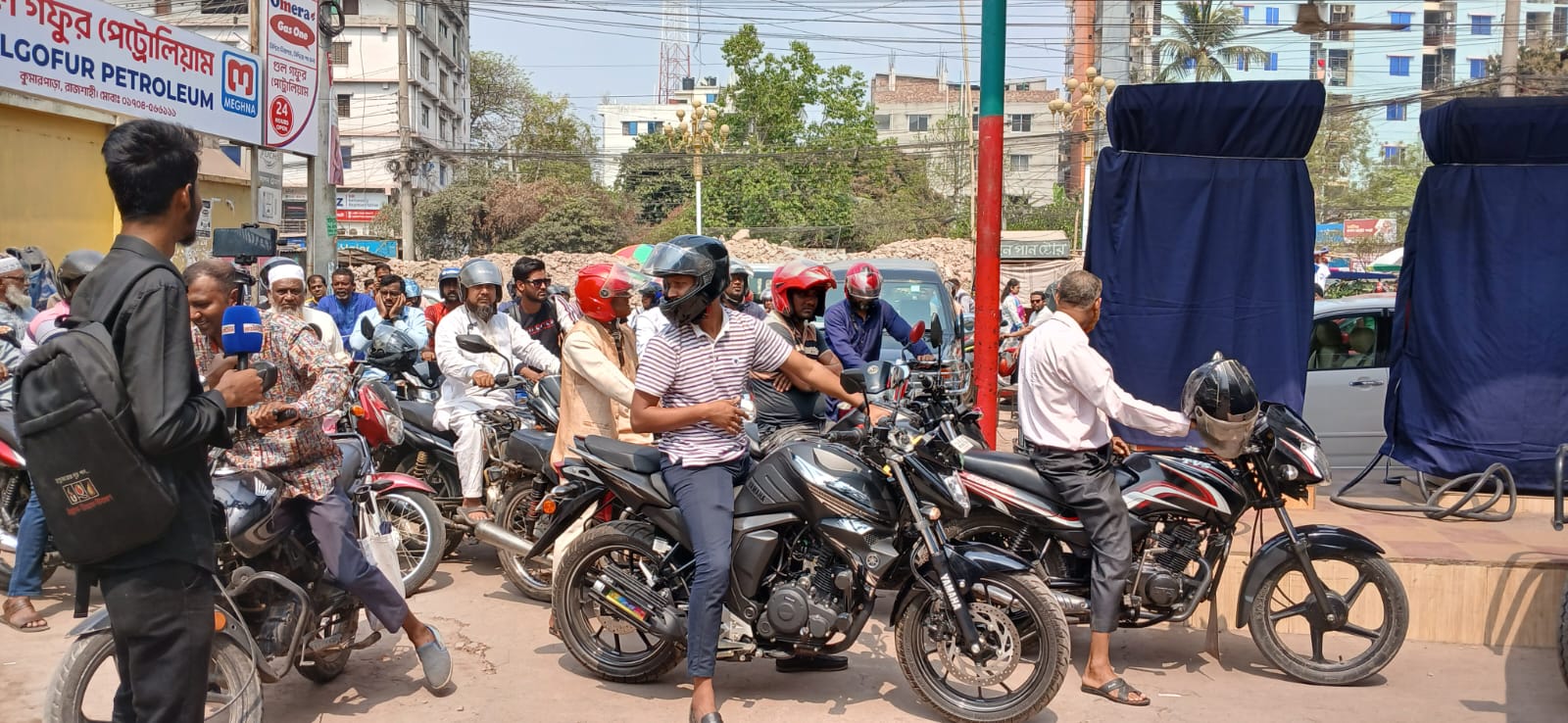 নগরীর বিভিন্ন ফিলিং স্টেশনে মোটরসাইকেল চালকদের দীর্ঘ সারি লক্ষ্য করা গেছে। তেল পাওয়ার আশায় অনেকে এক পাম্প থেকে অন্য পাম্পে ঘুরছেন, তবুও পুরো চাহিদা মেটানো সম্ভব হচ্ছে না। কোথাও কোথাও তেল শেষ হয়ে যাওয়ায় কয়েকটি স্টেশন সাময়িকভাবে বন্ধ রয়েছে। যেসব স্টেশনে তেল আছে, সেগুলোতেও বিক্রি হচ্ছে সীমিত পরিমাণে।