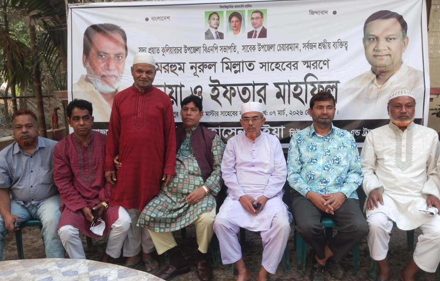 কিশোরগঞ্জের কুলিয়ারচর উপজেলার ফরিদপুর ইউনিয়নে সদ্য প্রয়াত উপজেলা বিএনপির সভাপতি, উপজেলা পরিষদের সাবেক চেয়ারম্যান ও কুলিয়ারচর পৌরসভার সাবেক মেয়র নূরুল মিল্লাতের স্মরণে দোয়া ও ইফতার মাহফিল অনুষ্ঠিত হয়েছে। শনিবার (৭ মার্চ) বিকালে উপজেলার ফরিদপুর ইউনিয়নের আমোদপুর এলাকায় হাছেন আলী মাস্টারের বাড়িতে এ দোয়া ও মিলাদ মাহফিলের আয়োজন করা হয়।