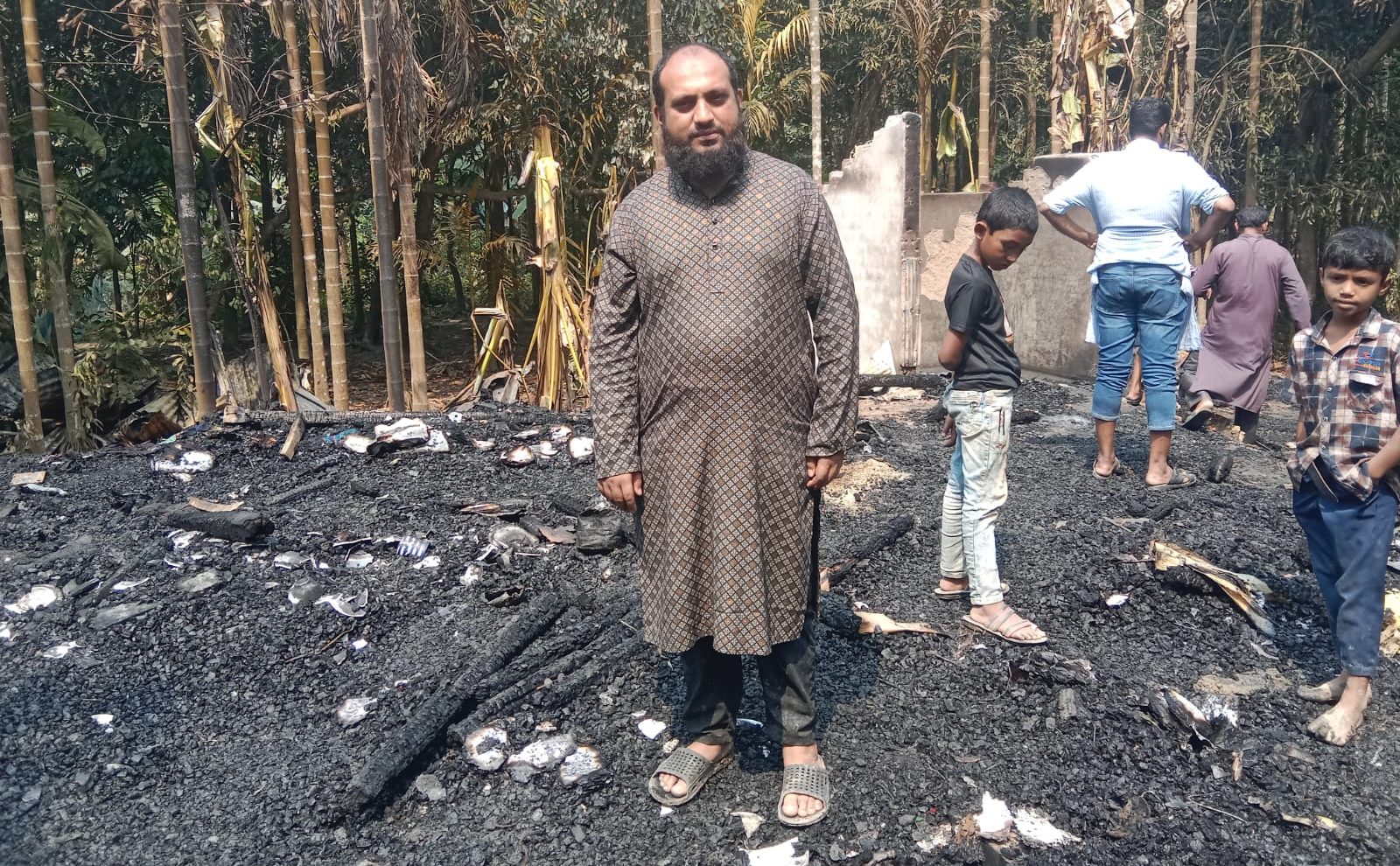 চুলার আগুনে ছাই শিক্ষকের স্বপ্ন: শরণখোলায় বসতঘর ভস্মীভূত