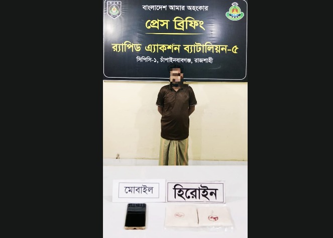 চাঁপাইনবাবগঞ্জে ২০০ গ্রাম হেরোইনসহ মাদক কারবারি গ্রেফতার