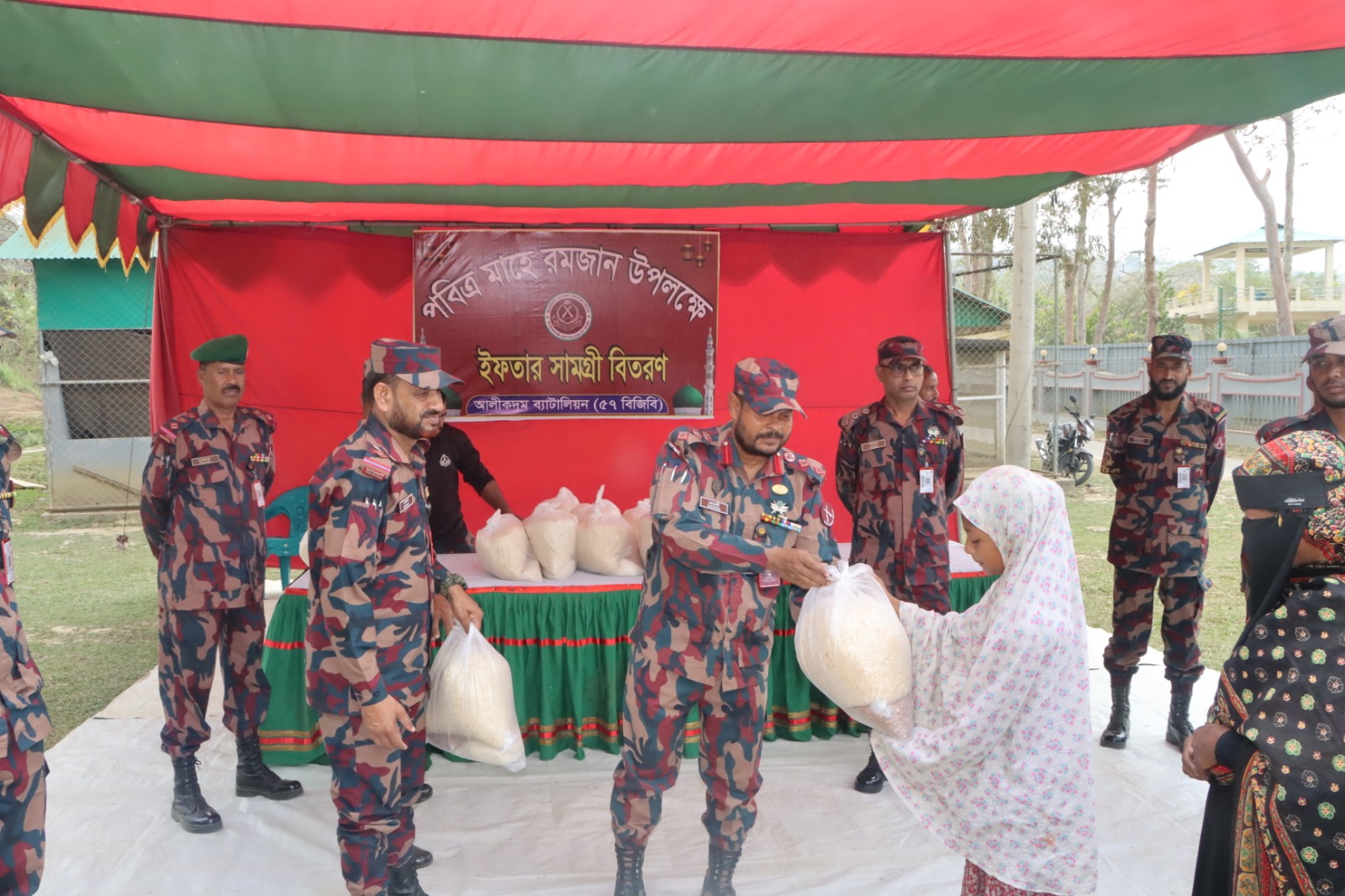 সোমবার (৯ মার্চ ২০২৬) আলীকদম উপজেলার নয়াপাড়া ইউনিয়নে আয়োজিত এক অনুষ্ঠানের মাধ্যমে এ সহায়তা কার্যক্রম পরিচালনা করা হয়। অনুষ্ঠানে প্রধান অতিথি হিসেবে উপস্থিত থেকে আলীকদম ব্যাটালিয়ন (৫৭ বিজিবি)-এর অধিনায়ক লেফটেন্যান্ট কর্নেল আব্দুল্লাহ আল মেহেদী, পদাতিক স্থানীয় দুঃস্থ ও অসহায় পরিবারের মাঝে ইফতার সামগ্রী বিতরণ করেন।