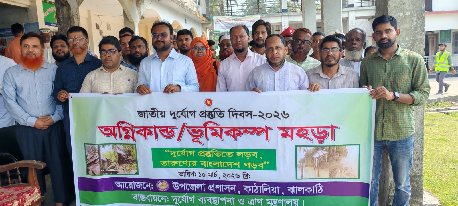জাতীয় দুর্যোগ প্রস্তুতি দিবস উপলক্ষে ঝালকাঠির কাঠালিয়ায় ভূমিকম্প ও অগ্নিনিরাপত্তা বিষয়ক মহড়া অনুষ্ঠিত হয়েছে। মঙ্গলবার (১০ মার্চ) সকাল ১১টায় কাঠালিয়া উপজেলা পরিষদ মাঠে ফায়ার সার্ভিস ও সিভিল ডিফেন্সের উদ্যোগে এ মহড়ার আয়োজন করা হয়।