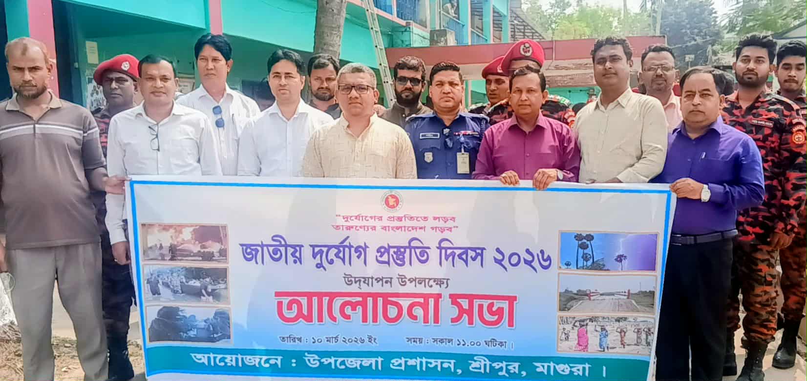 ‘দুর্যোগ প্রস্তুতিতে লড়বো, তারুণ্যের বাংলাদেশ গড়বো”—এই প্রতিপাদ্যকে সামনে রেখে মাগুরার শ্রীপুরে জাতীয় দুর্যোগ প্রস্তুতি দিবস পালিত হয়েছে। দিবসটি উপলক্ষে উপজেলা প্রশাসন এবং দুর্যোগ ব্যবস্থাপনা ও ত্রাণ মন্ত্রণালয়ের উদ্যোগে নানা কর্মসূচির আয়োজন করা হয়।