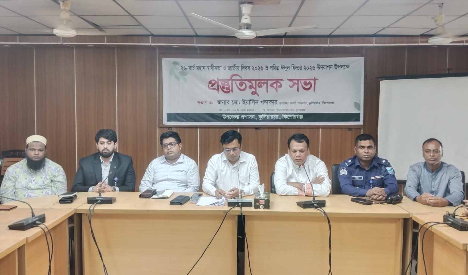 মহান স্বাধীনতা দিবস ২০২৬ যথাযোগ্য মর্যাদা ও উৎসাহ-উদ্দীপনার মধ্য দিয়ে উদযাপন উপলক্ষে কিশোরগঞ্জের কুলিয়ারচর উপজেলায় এক প্রস্তুতিমূলক সভা অনুষ্ঠিত হয়েছে। মঙ্গলবার (১০ মার্চ) সকাল ১১টায় উপজেলা পরিষদ মিলনায়তনে উপজেলা প্রশাসনের উদ্যোগে এই সভা অনুষ্ঠিত হয়।