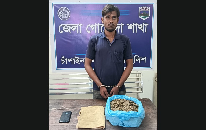 চাঁপাইনবাবগঞ্জে জেলা গোয়েন্দা শাখা (ডিবি) পুলিশের বিশেষ অভিযানে ১ কেজি গাঁজাসহ মোঃ রুবেল আলী (৩১) নামে এক মাদক কারবারিকে গ্রেফতার করা হয়েছে। মঙ্গলবার (১০ মার্চ) দুপুর সাড়ে ১২টার দিকে সদর উপজেলার ঝিলিম ইউনিয়নের আমনুরা টংপাড়া গ্রামের শিমুলতলা এলাকায় নাচোলগামী পাকা রাস্তার পশ্চিম পাশে অভিযান চালিয়ে তাকে আটক করা হয়।
