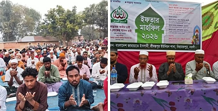বাংলাদেশ জামায়াতে ইসলামী নওগাঁ জেলা শাখার উদ্যোগে পবিত্র রমজান মাস উপলক্ষে একটি ইফতার মাহফিল অনুষ্ঠিত হয়েছে। অনুষ্ঠানে স্থানীয় নেতৃবৃন্দ, আলেম-উলামা, এবং বিভিন্ন স্তরের নেতাকর্মীরা অংশগ্রহণ করেন। ধর্মীয় ও সৌহার্দ্যপূর্ণ পরিবেশে অনুষ্ঠিত মাহফিলে রমজানের তাৎপর্য, নৈতিকতা ও সমাজকল্যাণমূলক কার্যক্রম নিয়ে বিস্তারিত আলোচনা করা হয়।