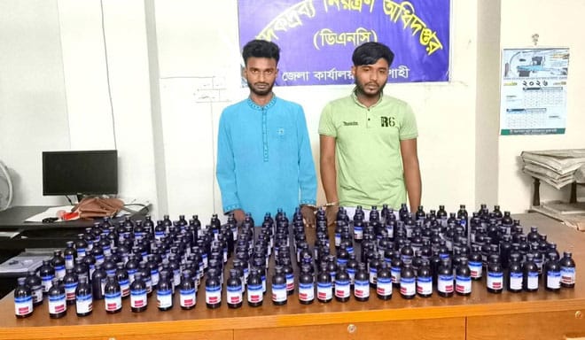 রাজশাহীতে অভিযান চালিয়ে একটি প্রাইভেট কার থেকে বিপুল পরিমাণ মাদকদ্রব্য উদ্ধার করেছে মাদকদ্রব্য নিয়ন্ত্রণ অধিদফতর (ডিএনসি)। এ ঘটনায় দুইজন মাদক ব্যবসায়ীকে গ্রেপ্তার করা হয়েছে। উদ্ধার হওয়া মাদকদ্রব্যের মধ্যে ২১৫ বোতল ইসকাফ সিরাপ রয়েছে, যার আনুমানিক বাজারমূল্য প্রায় সাড়ে ছয় লাখ টাকা বলে জানিয়েছে সংশ্লিষ্ট কর্তৃপক্ষ।