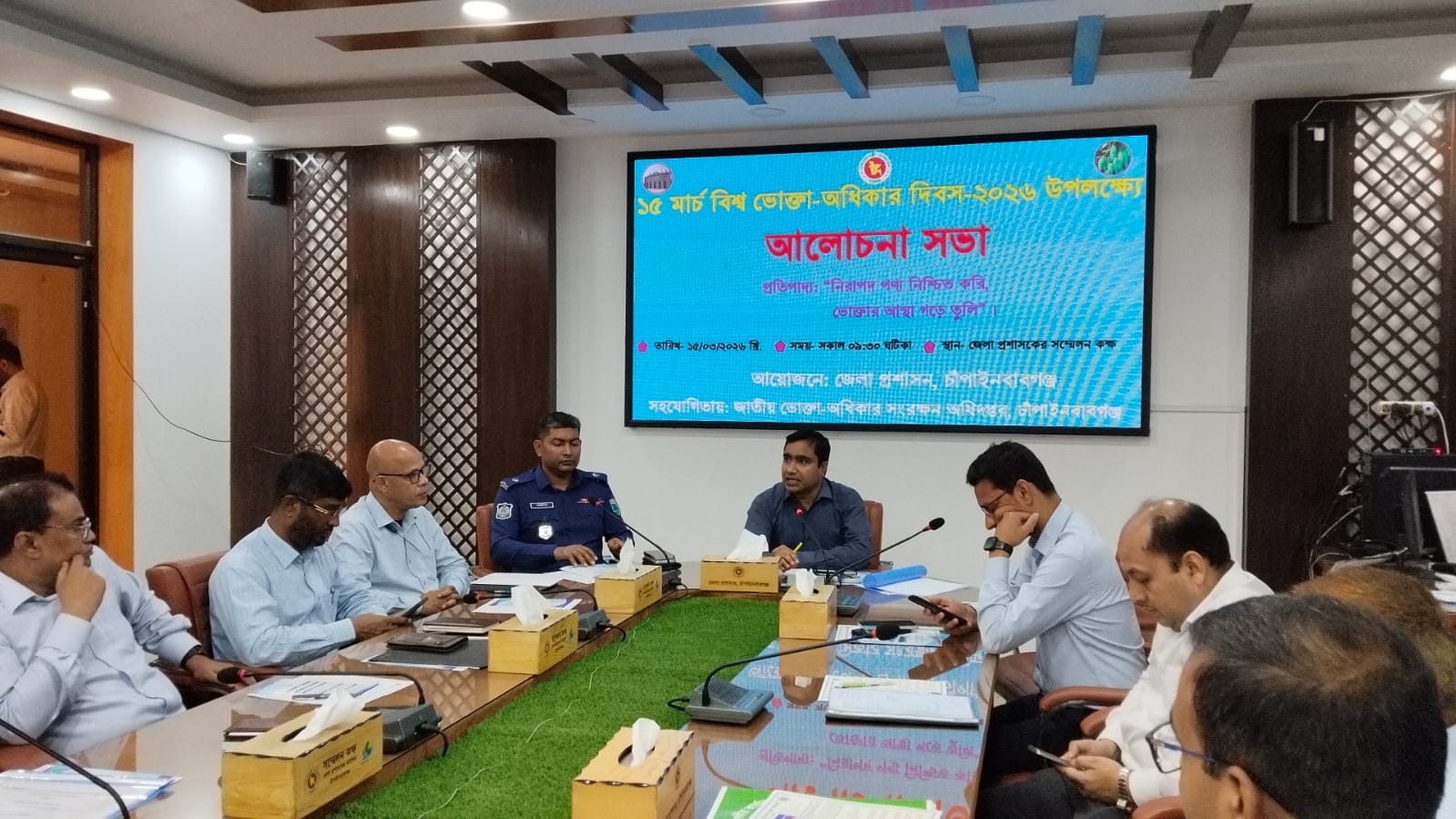 আলোচনা সভায় আরও বক্তব্য দেন কৃষি সম্প্রসারণ অধিদপ্তর চাঁপাইনবাবগঞ্জের উপপরিচালক ড. ইয়াছিন আলী এবং কনজ্যুমারস অ্যাসোসিয়েশন অব বাংলাদেশ (ক্যাব) চাঁপাইনবাবগঞ্জ জেলা শাখার সভাপতি অ্যাডভোকেট মো. আব্দুল হামিদ। বক্তারা ভোক্তাদের অধিকার সুরক্ষায় সংশ্লিষ্ট সকল পক্ষকে সমন্বিতভাবে কাজ করার আহ্বান জানান।