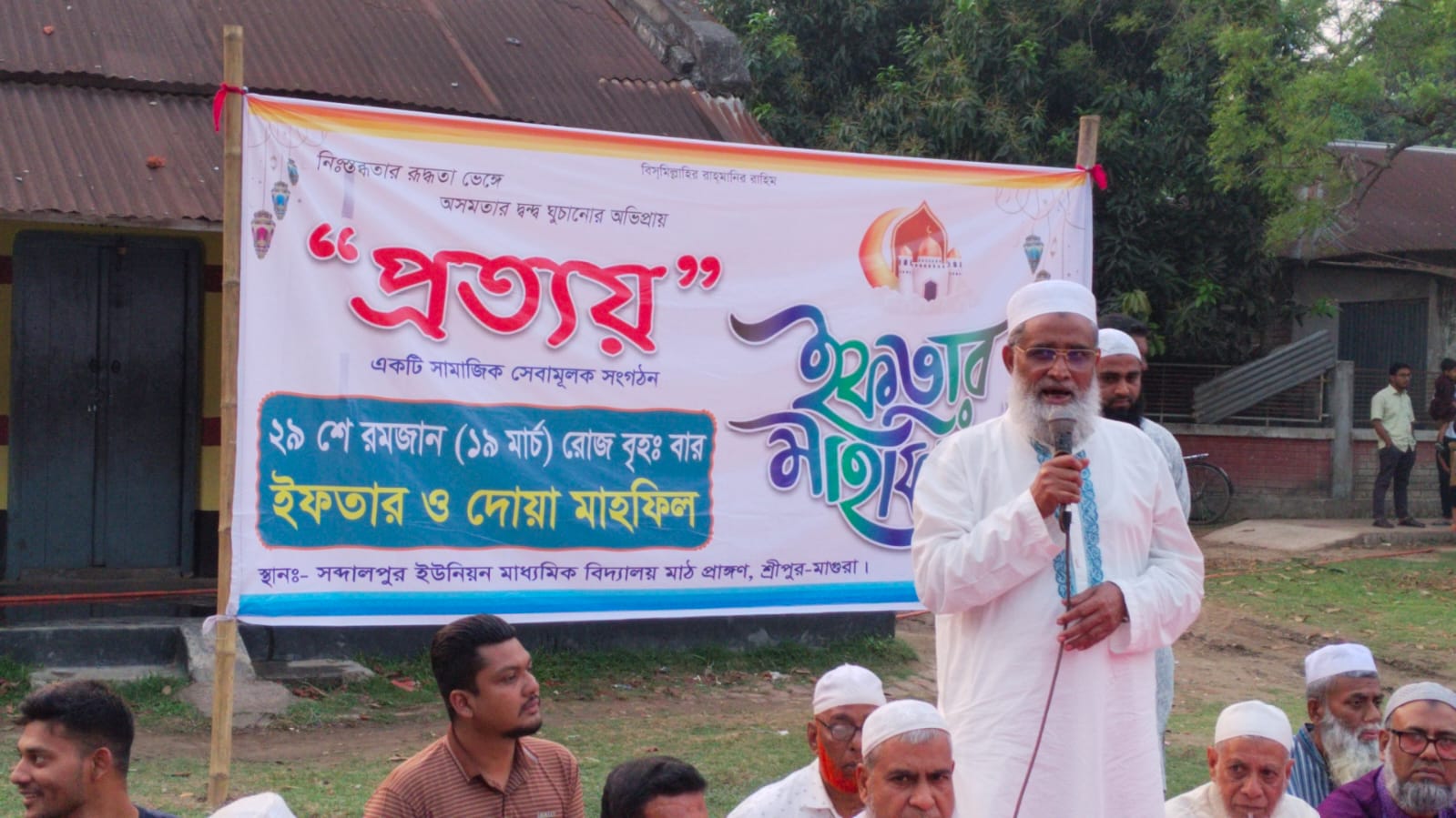 মাগুরার শ্রীপুর উপজেলায় সামাজিক সংগঠন “প্রত্যয়”-এর উদ্যোগে প্রতিবছরের ধারাবাহিকতায় এবারও ইফতার ও দোয়া মাহফিল অনুষ্ঠিত হয়েছে। পবিত্র রমজান মাসের শেষ প্রান্তে আয়োজিত এই মাহফিল স্থানীয়ভাবে ব্যাপক সাড়া ফেলেছে এবং বিভিন্ন শ্রেণি-পেশার মানুষের অংশগ্রহণে অনুষ্ঠানটি পরিণত হয় এক মিলনমেলায়।
