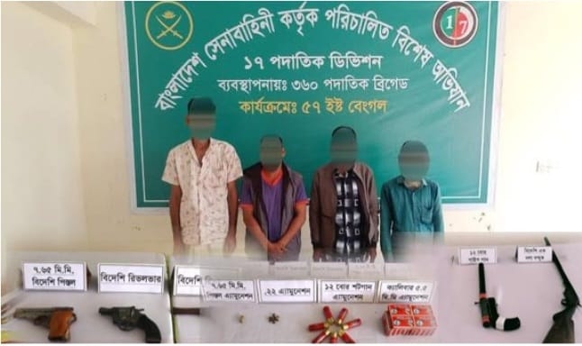 মঙ্গলবার (২৪ মার্চ) বাংলাদেশ সেনাবাহিনীর ভেরিফায়েড ফেসবুক সূত্রে জানা যায়, সোমবার দিবাগত রাত ২টা থেকে মঙ্গলবার ভোর ৬টা পর্যন্ত সুনির্দিষ্ট গোয়েন্দা তথ্যের ভিত্তিতে ১৭ পদাতিক ডিভিশনের একটি দল এ অভিযান পরিচালনা করে।